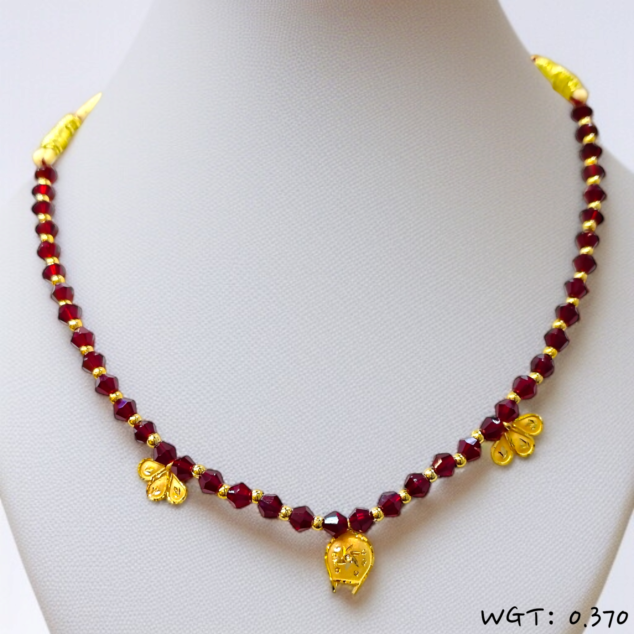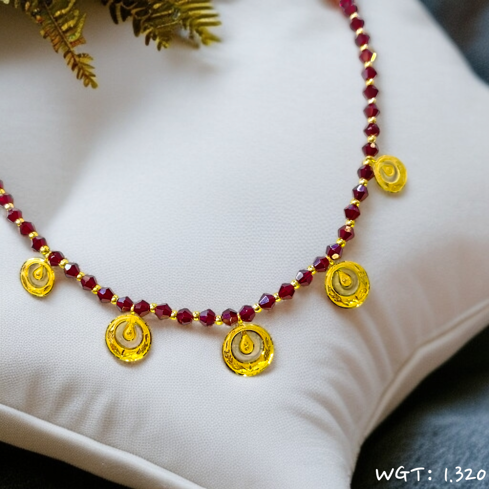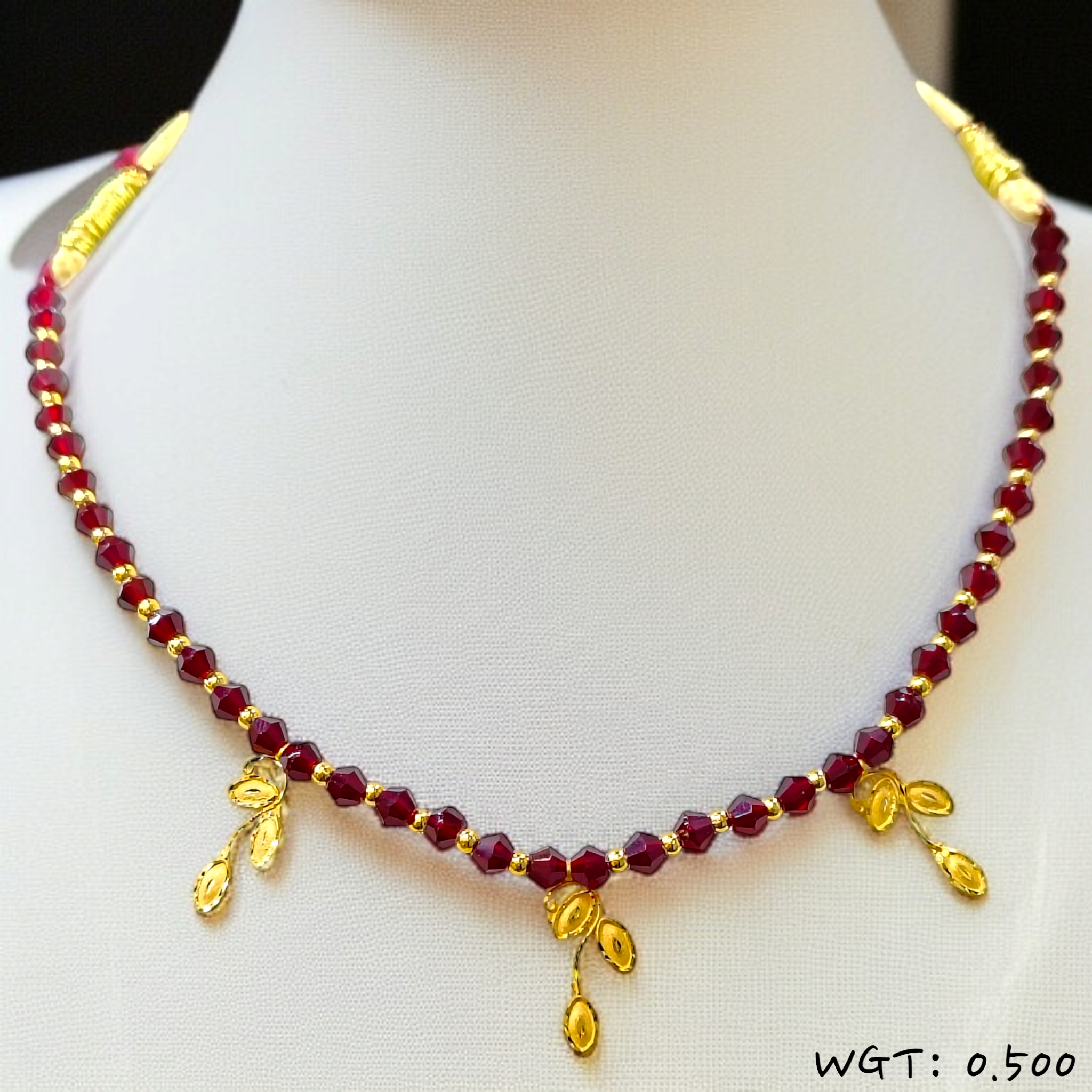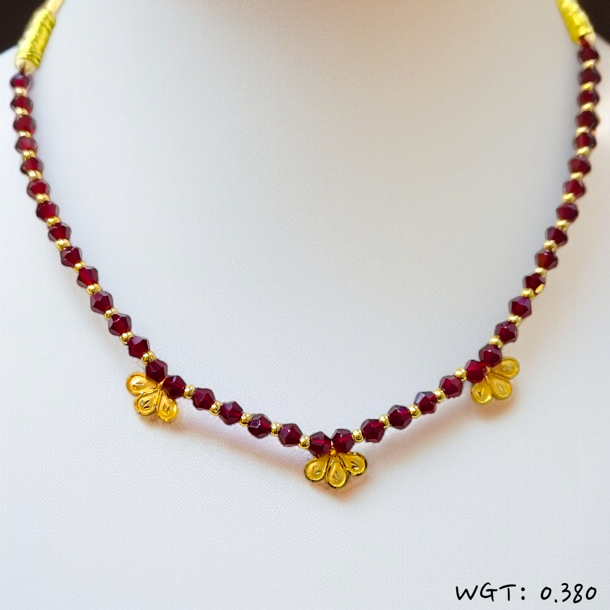 (GSH) TRJ WGT: 1.00 GM APPROX 22KT HUID HALLMARK GOLD CRYSTAL CHATAI NECKLACE 1 PIECE WITH ADJUSTABLE TASSEL.