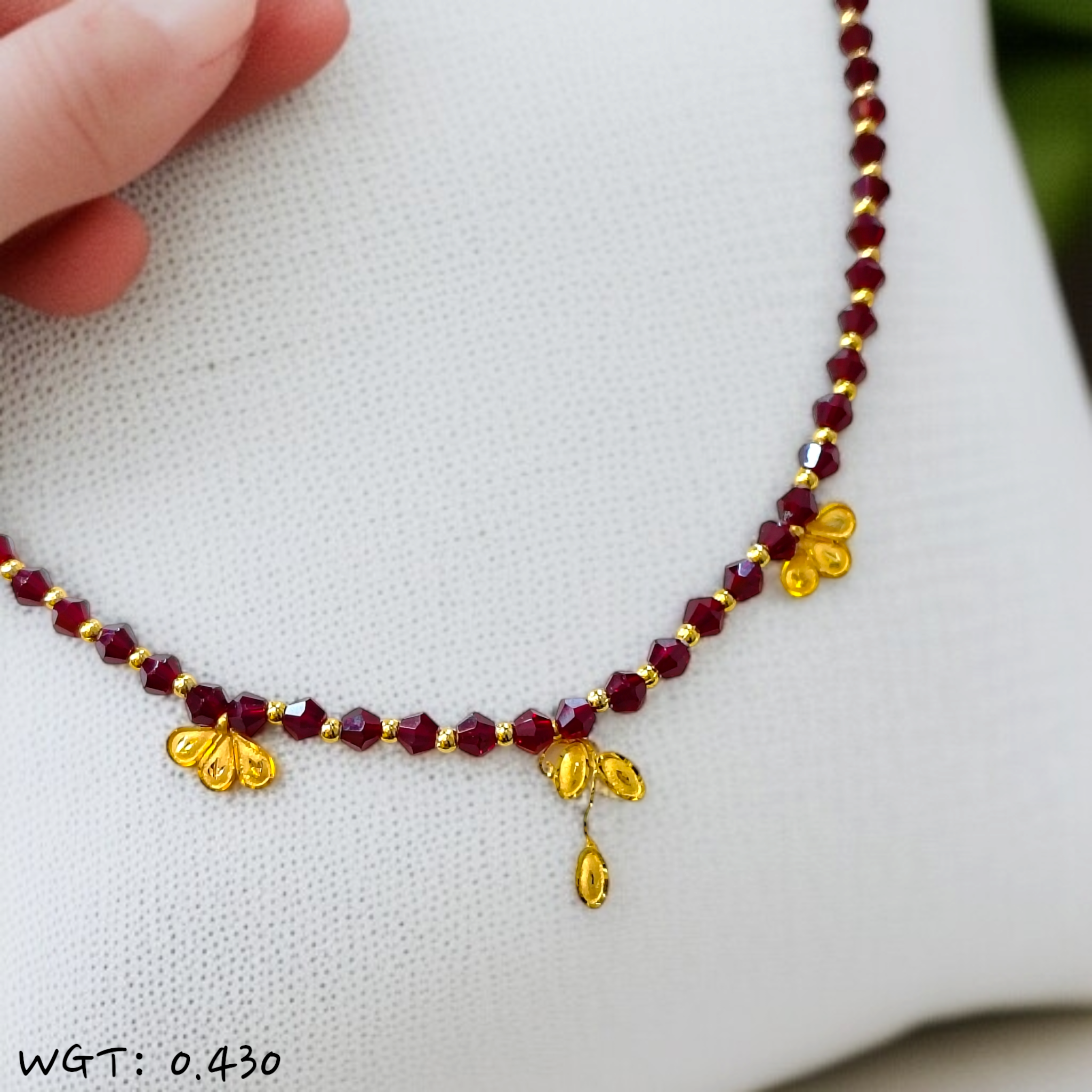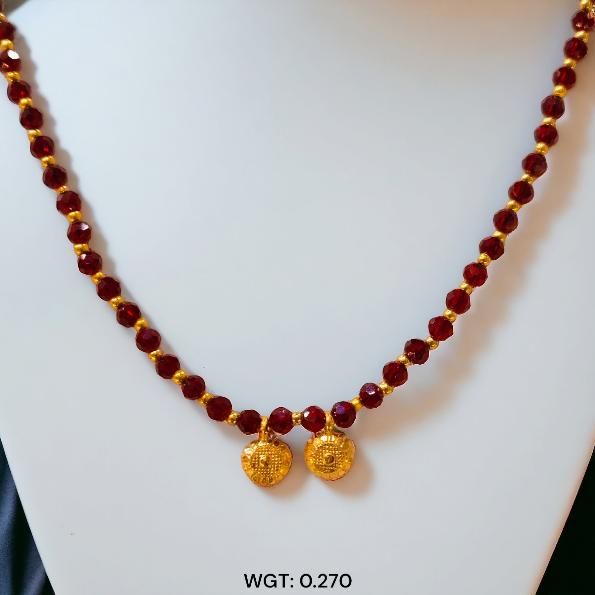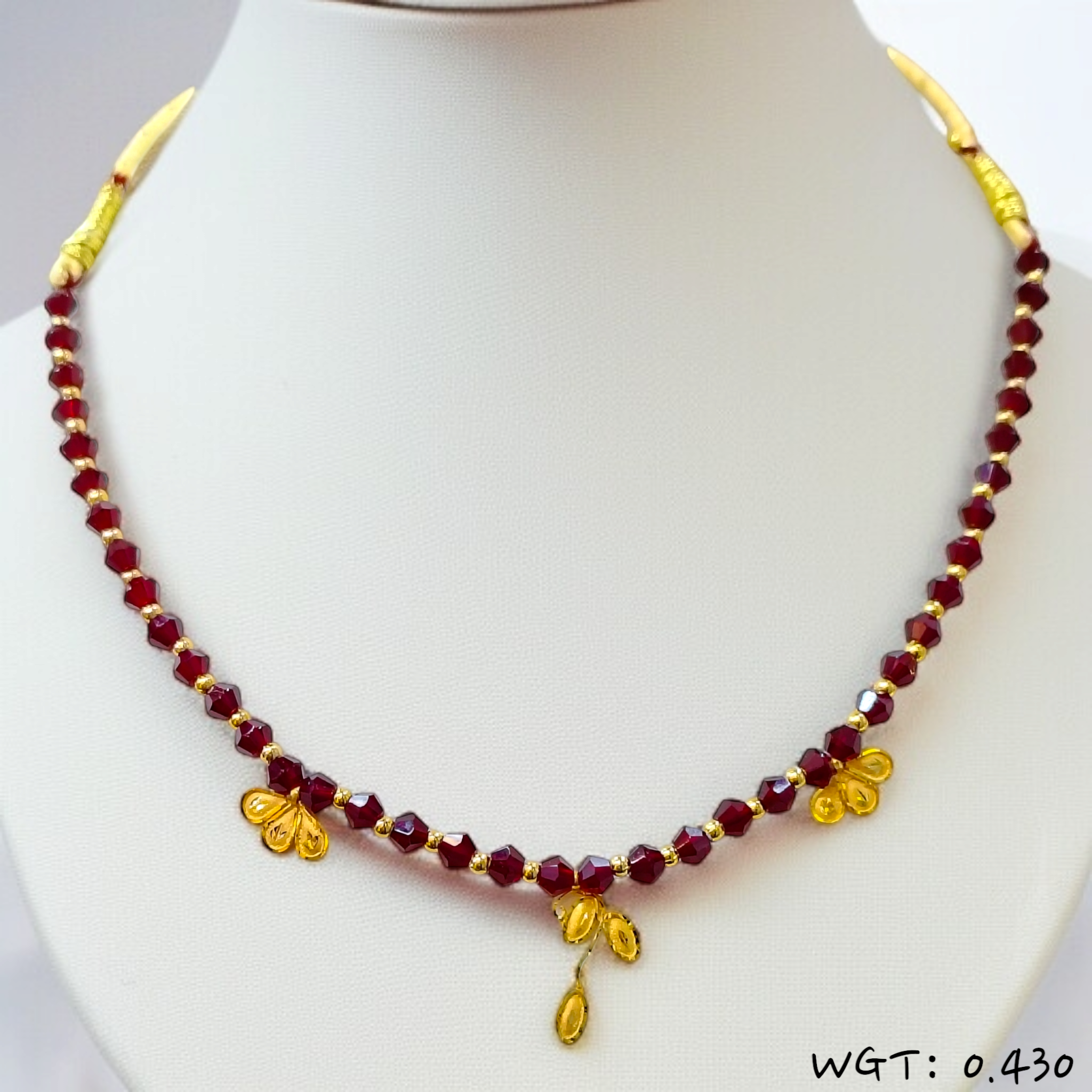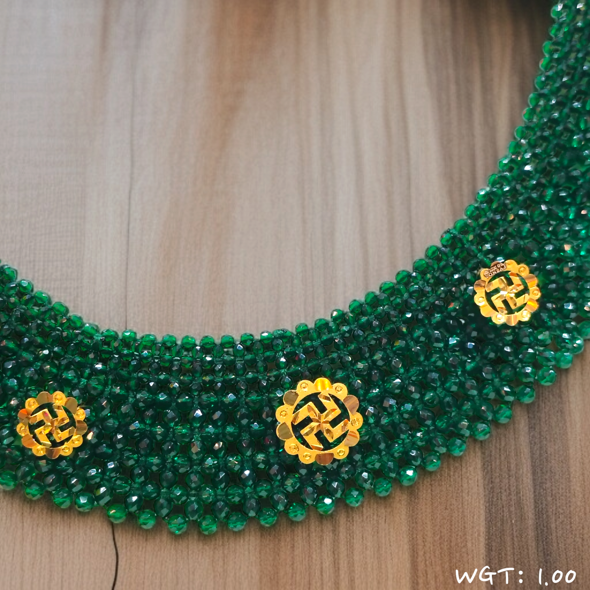 (GSH) TRJ WGT: 1.00 GM APPROX 22KT HUID HALLMARK GOLD CRYSTAL CHATAI NECKLACE 1 PIECE WITH ADJUSTABLE TASSEL.