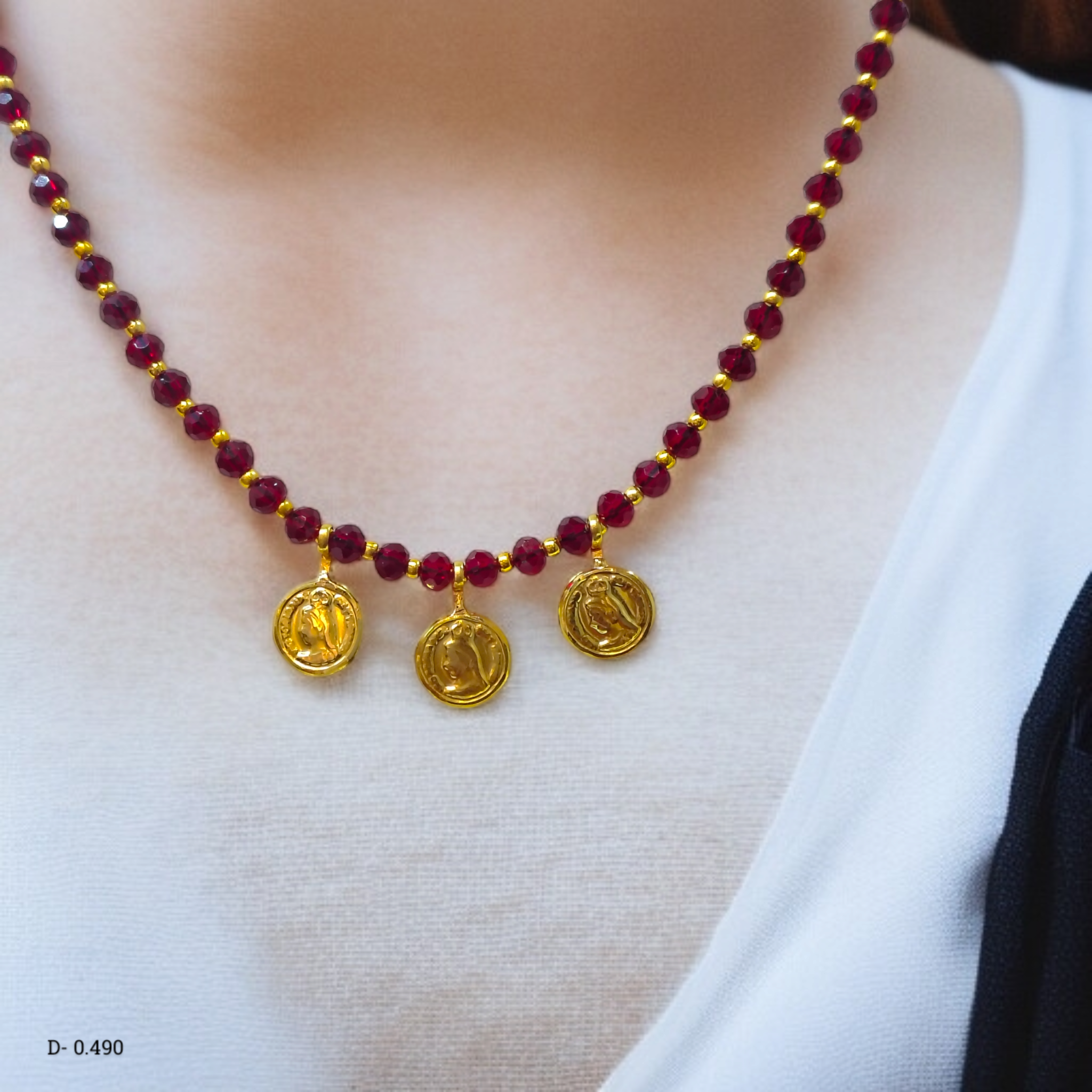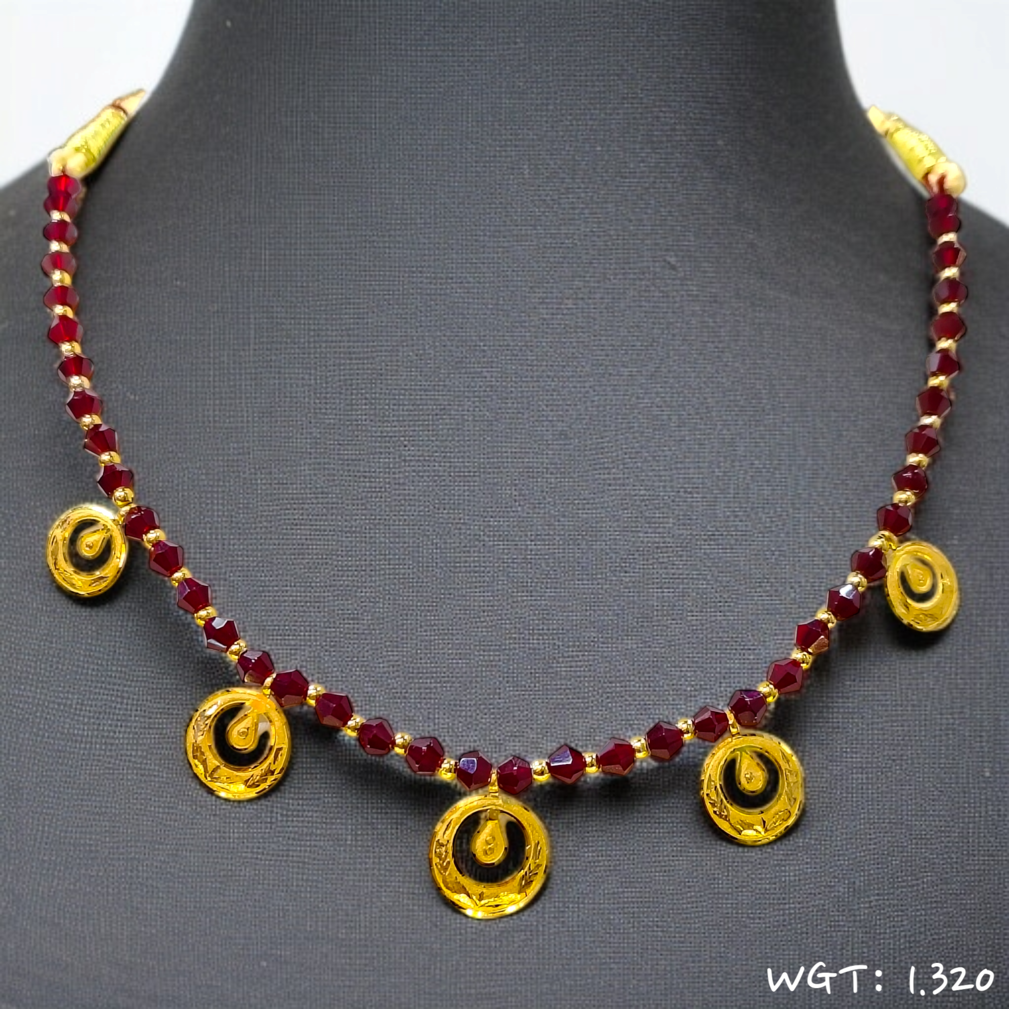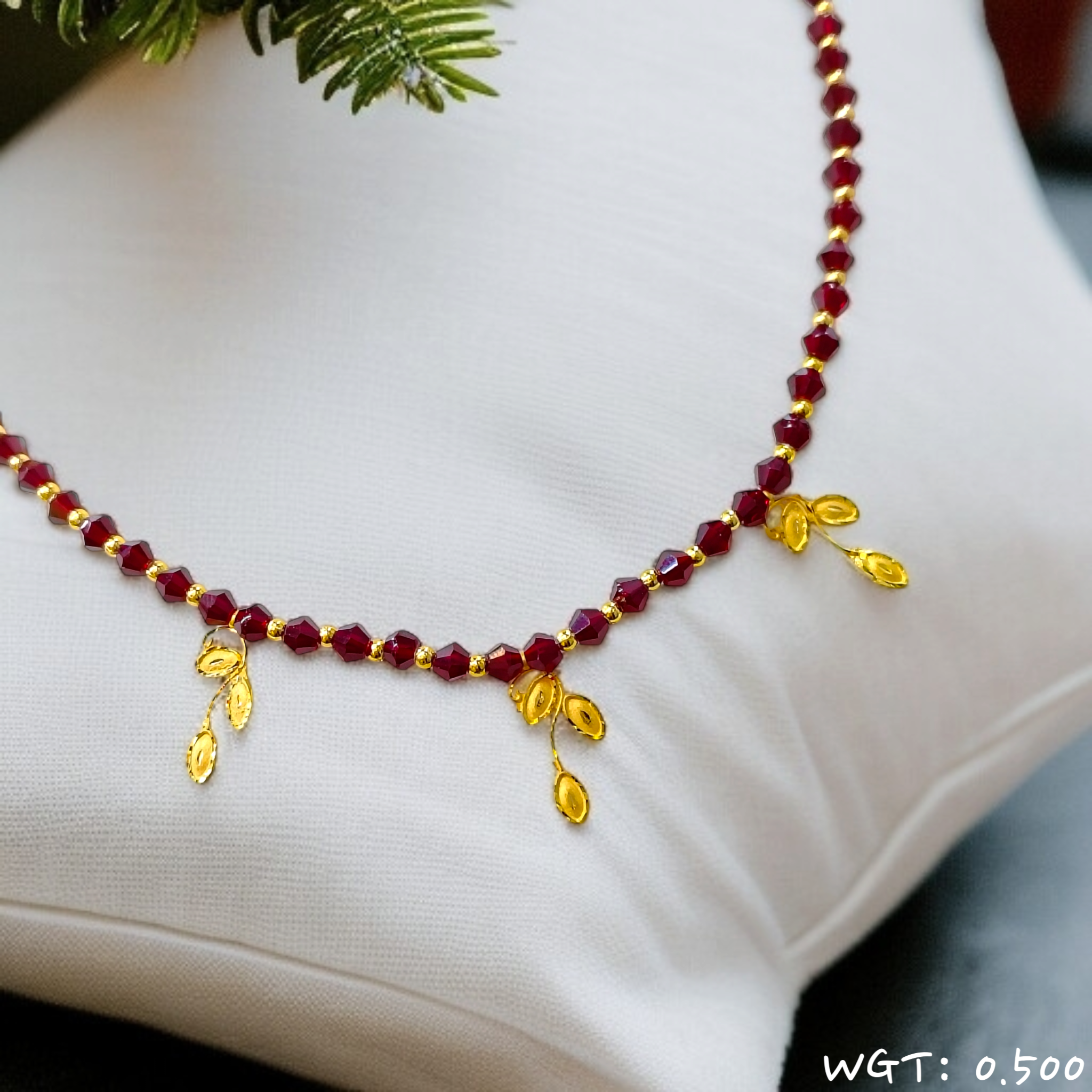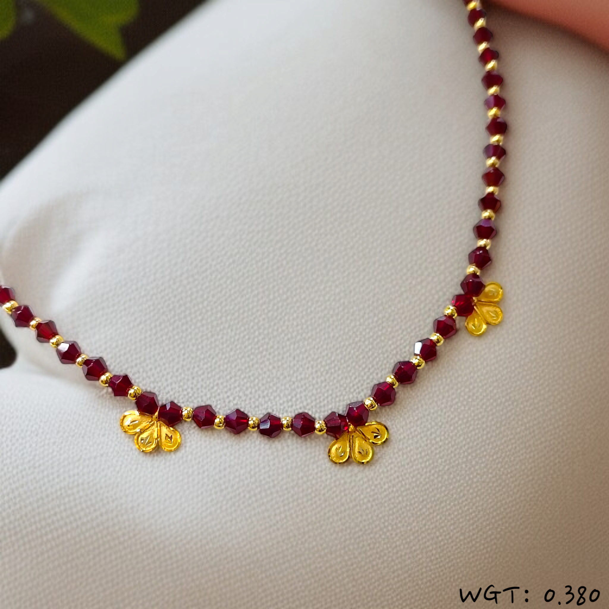 (GSH) TRJ WGT: 1.00 GM APPROX 22KT HUID HALLMARK GOLD CRYSTAL CHATAI NECKLACE 1 PIECE WITH ADJUSTABLE TASSEL.