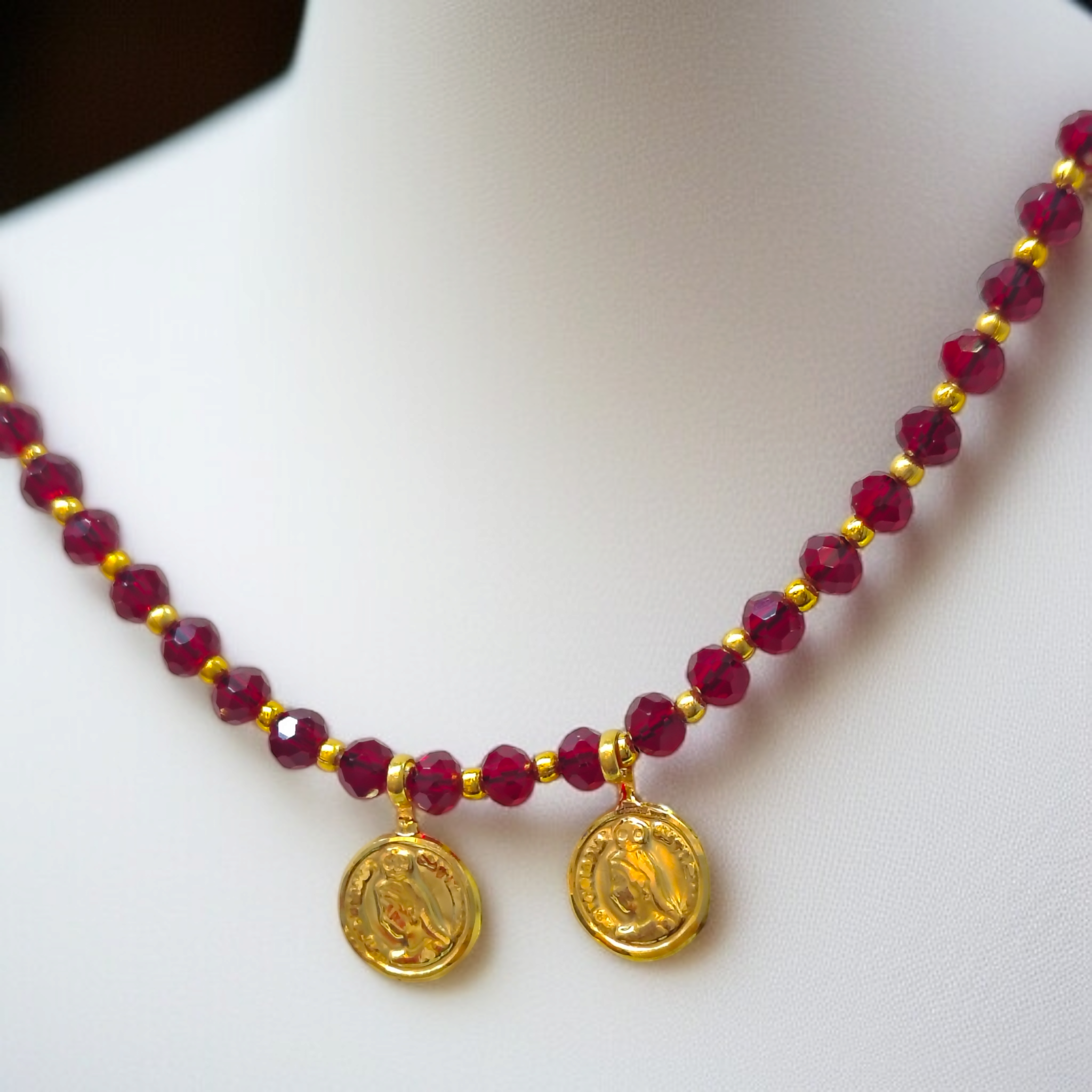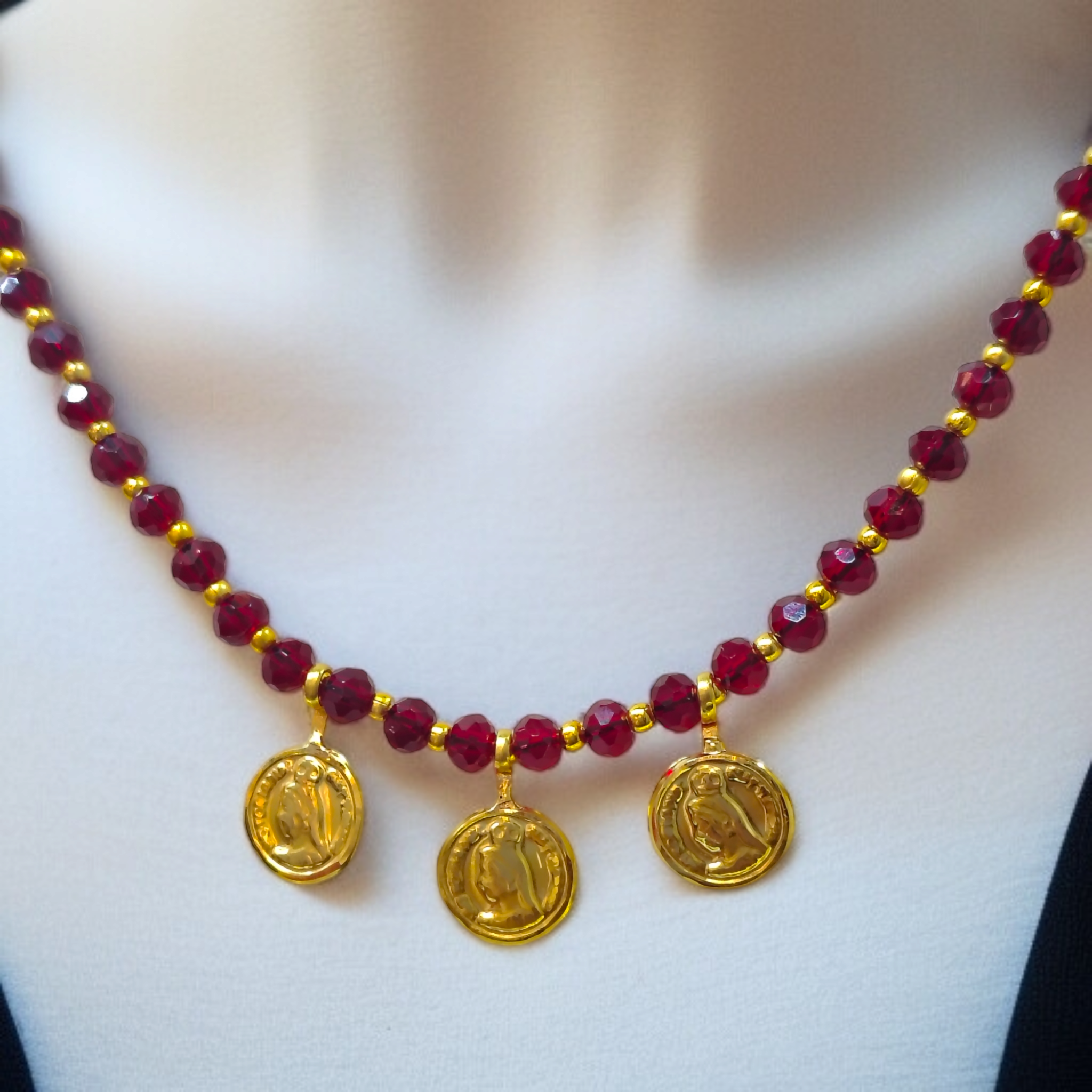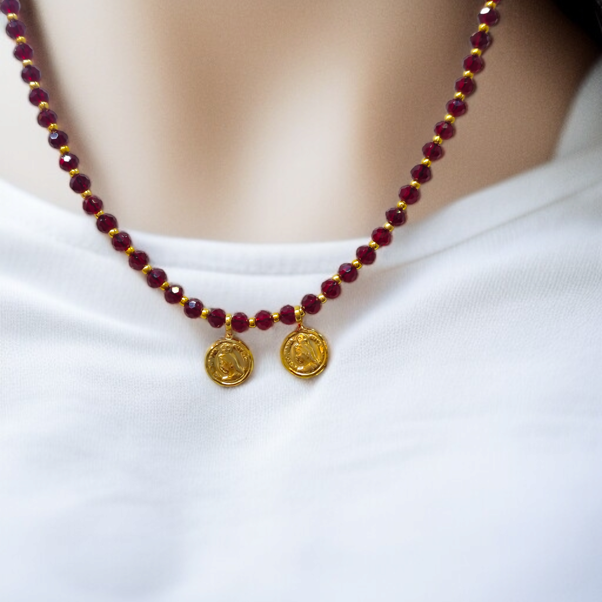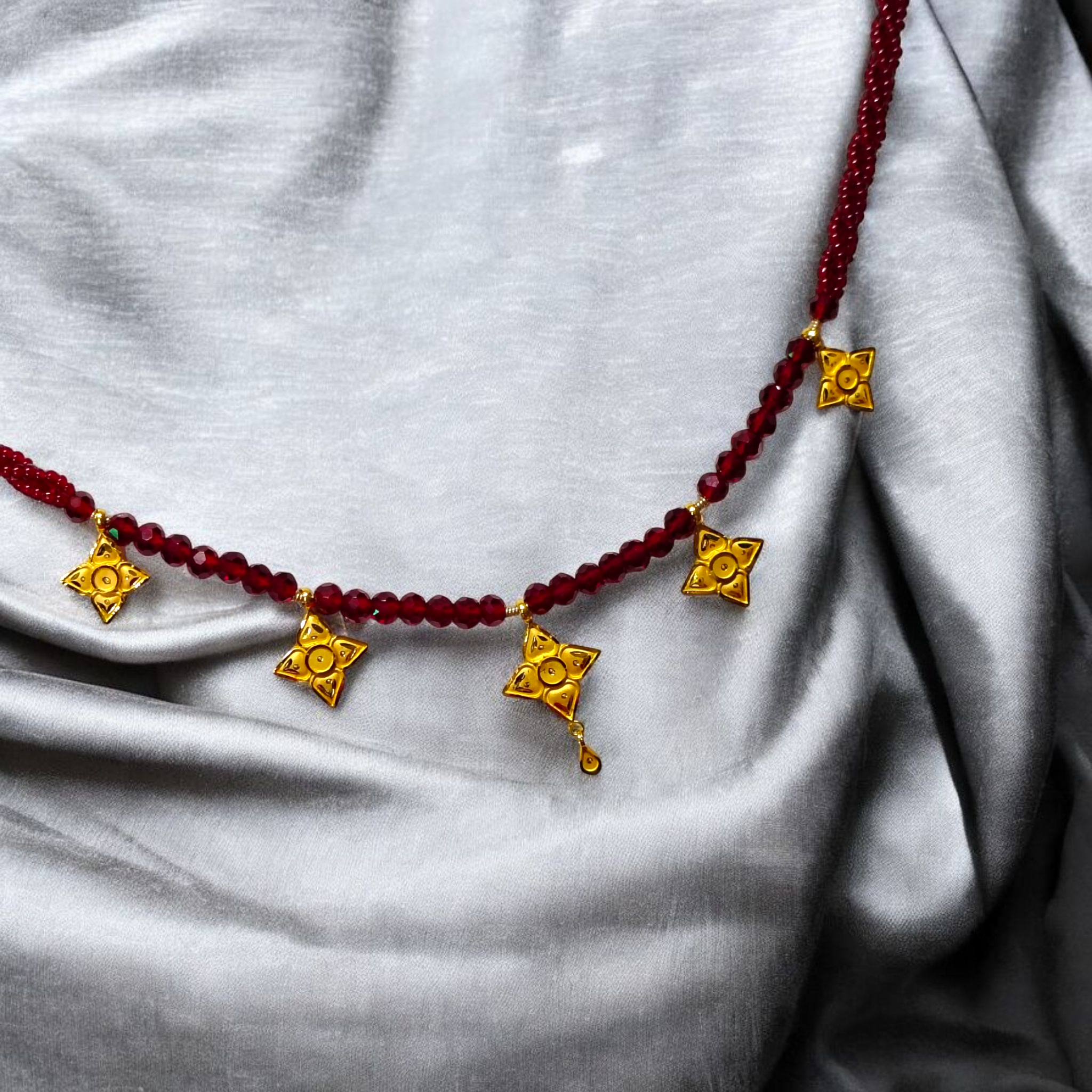 (GSH) TRJ WGT: 1.00 GM APPROX 22KT HUID HALLMARK GOLD CRYSTAL CHATAI NECKLACE 1 PIECE WITH ADJUSTABLE TASSEL.