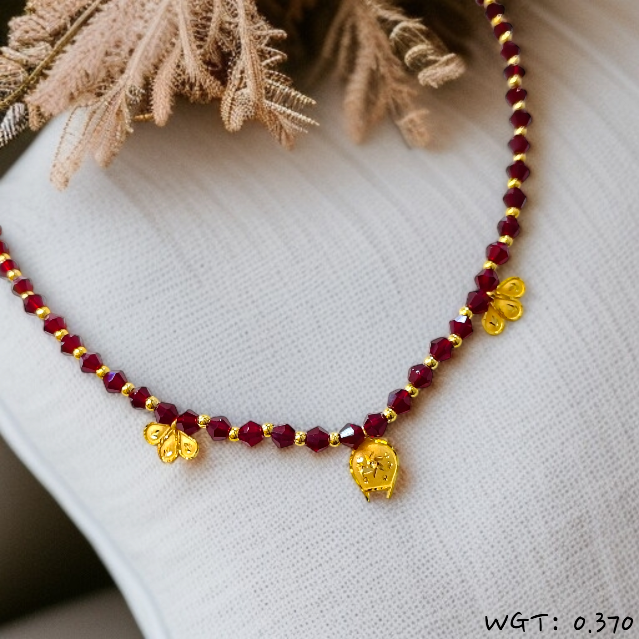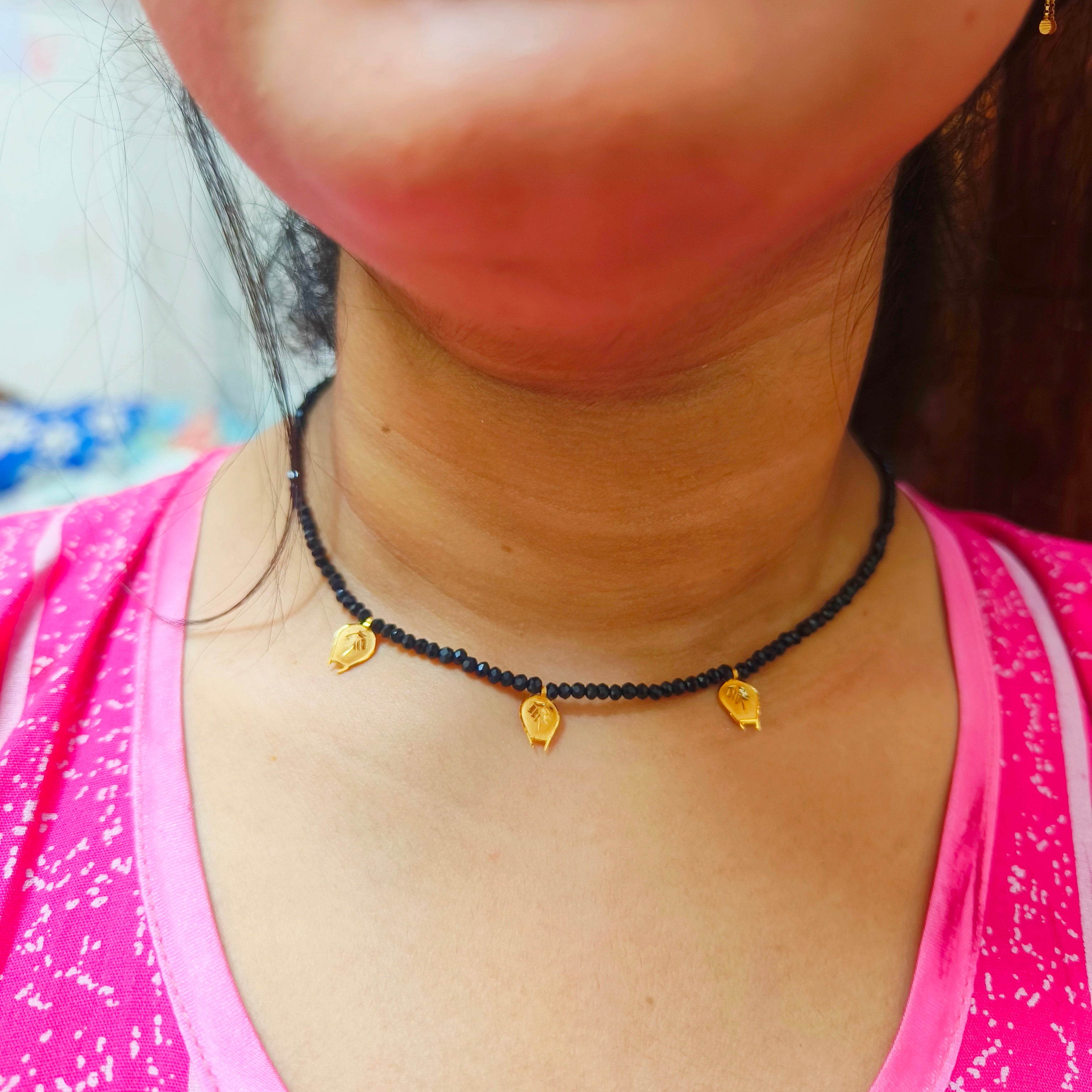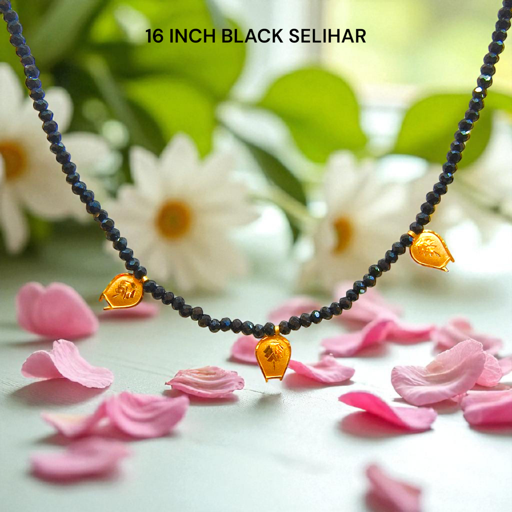 (GSH) TRJ WGT: 0.300 GM APPROX (50 TONCH) KDM GOLD KULO DESIGN SELIHAR 1 PIECE WITH BLACK CRYSTAL (16 INCH) FOR GIFT PURPOSE.