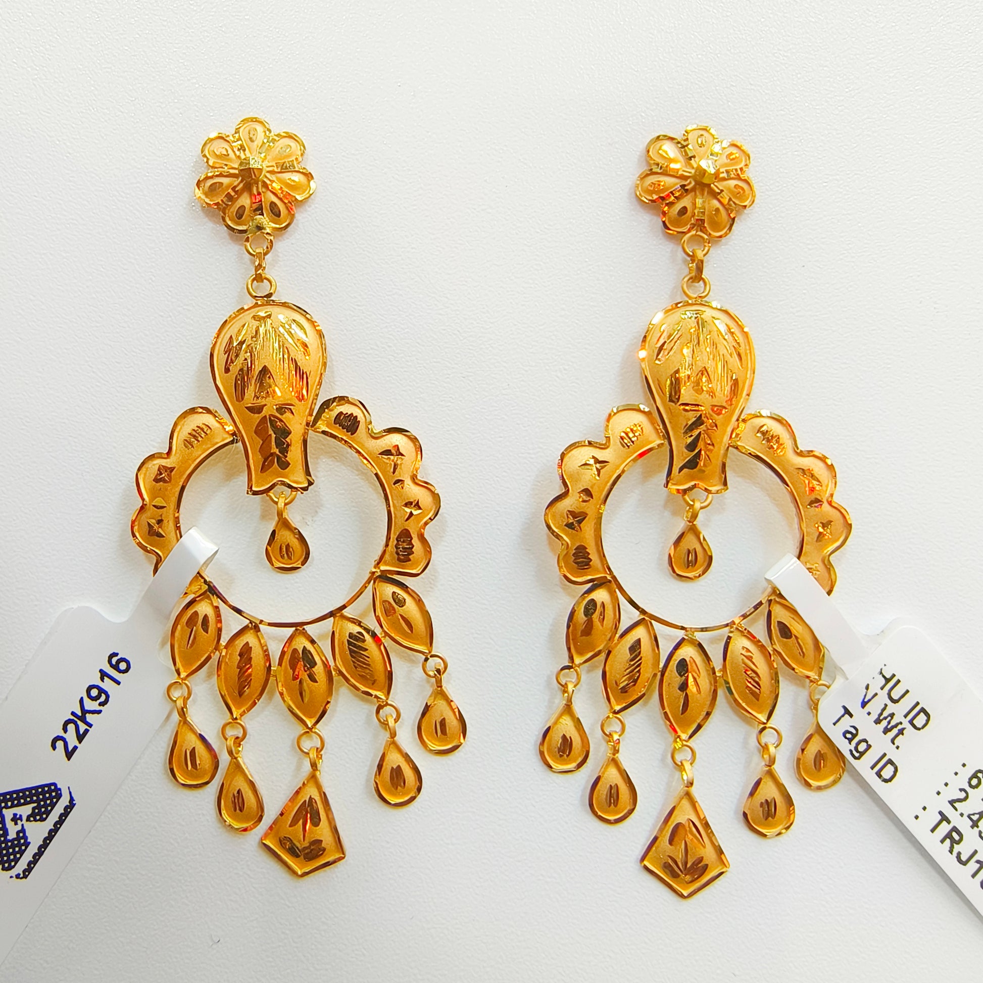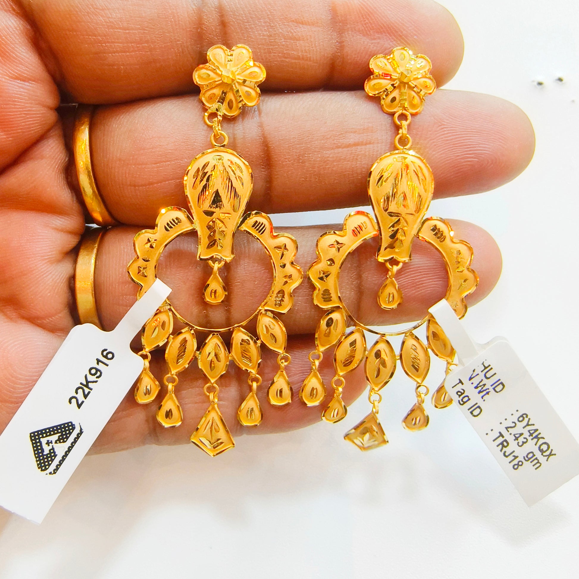 (GER22) BIS CERTIFIED WGT: 4.850 GM APPROX HUID HALLMARK 916 22KT GOLD EARRINGS 1 PAIR FOR WOMEN.