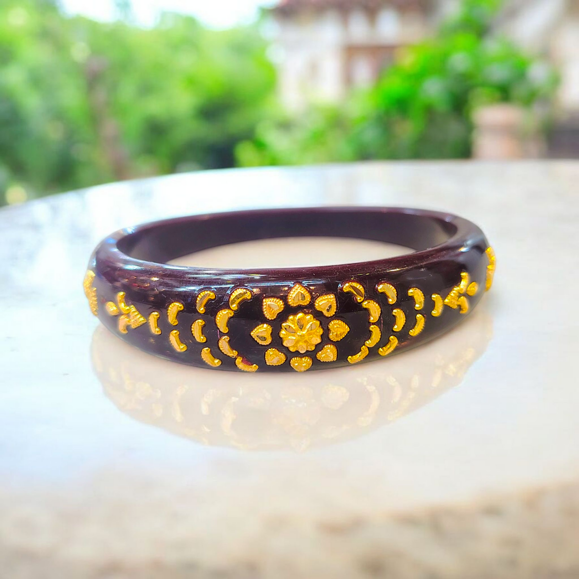 (GBP50) RAJLAXMI (MTO) CARROL DESIGN COFFEE COLOUR (50 TONCH) KDM GOLD BRACELET POLA 1 PIECE FOR MARRIED WOMEN (REGULAR USE) APPROX WGT: 0.400 GM SOLD ON MRP BY MAHALAXMI.