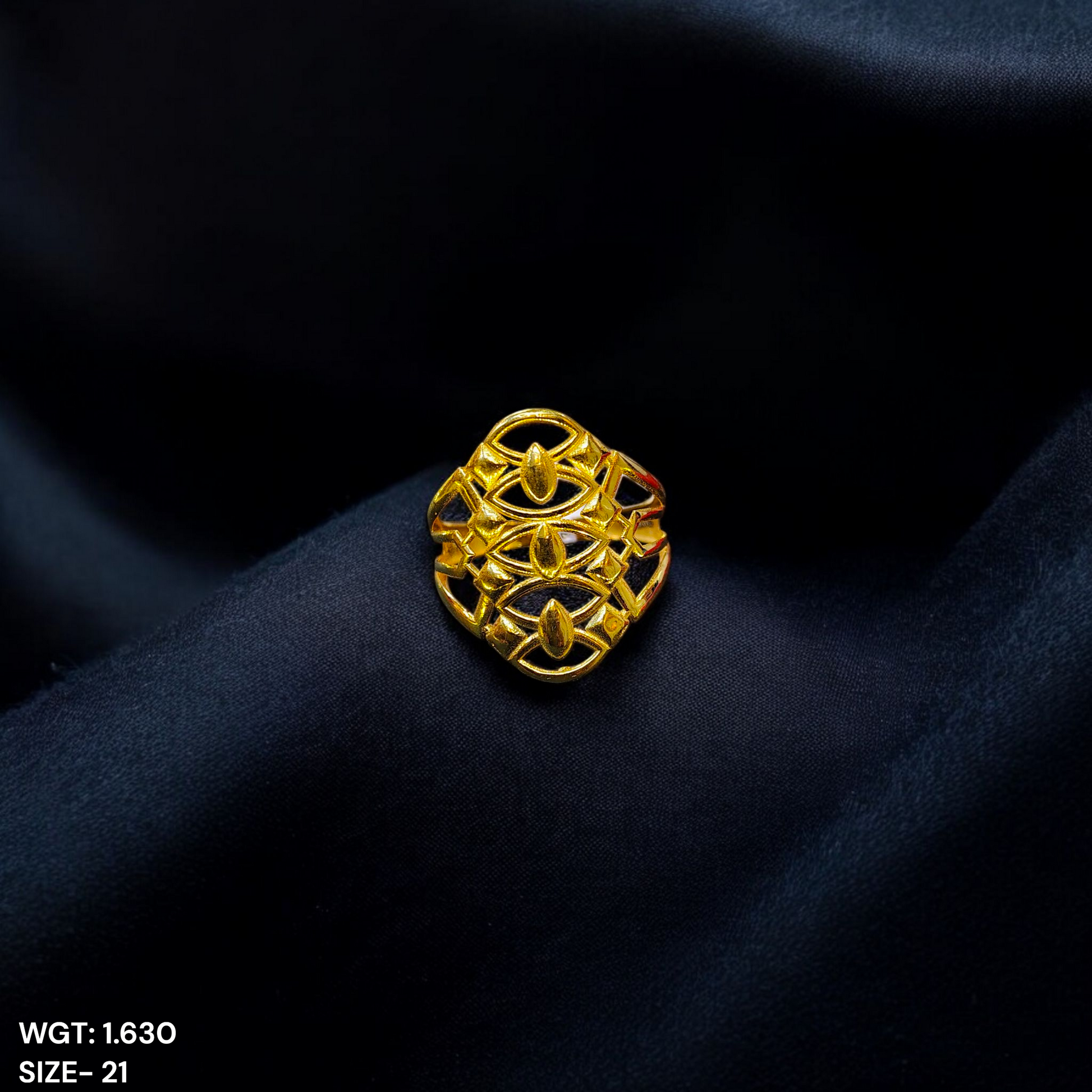 (GLFR9) TRJ (SIZE: 21) WGT: 1.630 GM APPROX BIS CERTIFIED HUID HALLMARK 9KT GOLD FINGER RING FOR WOMEN 1 PIECE FOR REGULAR USE.