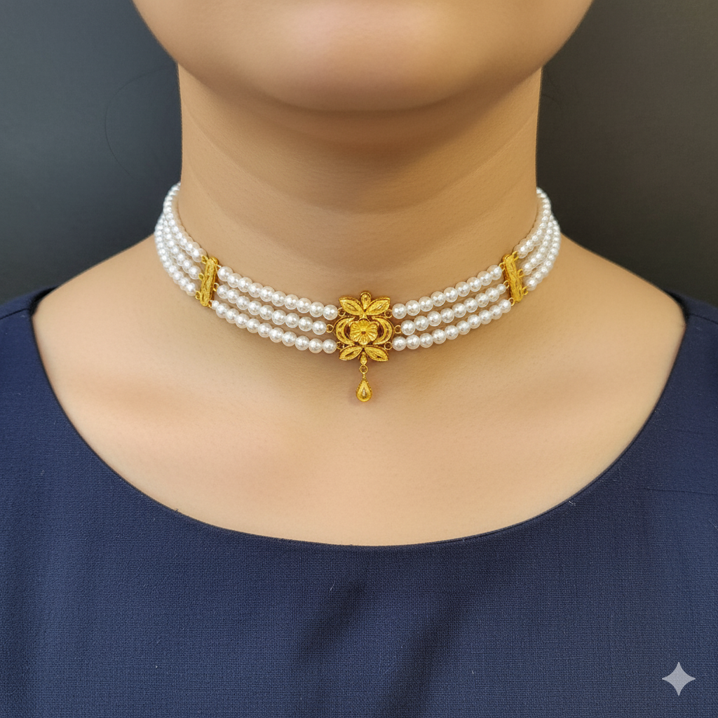 (GMC) CERTIFIED BIS HUID HALLMARK 916 22KT GOLD MOTI CHOKER 1 PIECE (WGT: 1.180 GM) WITH ADJUSTABLE TASSEL FOR GIFT IN MARRIAGE.