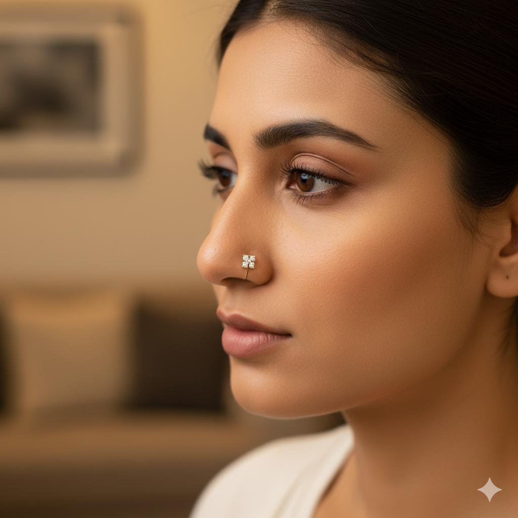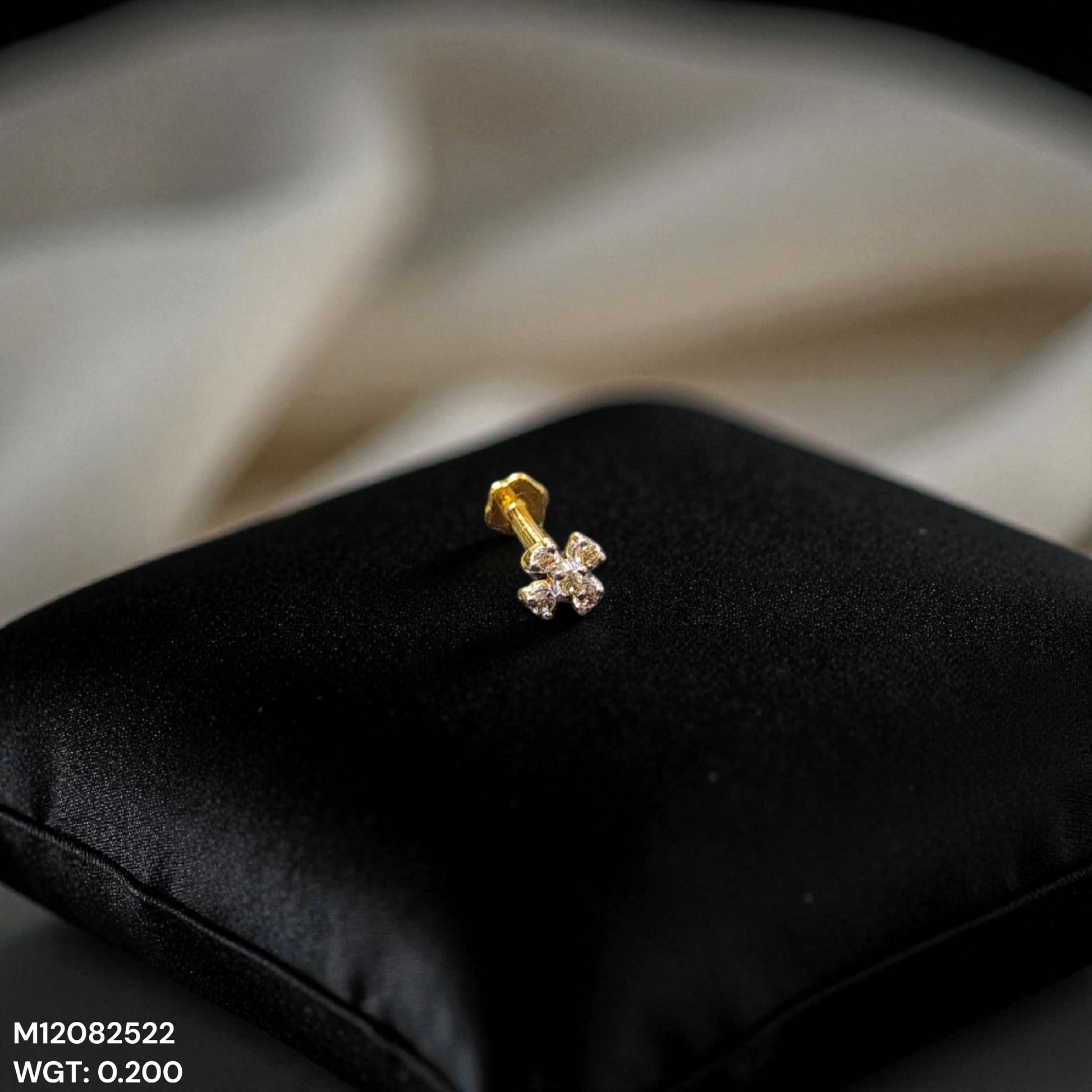 (GNP) RAJLAXMI DIAMOND JEWELLERY - WGT: 0.200 GM - NATURAL DIAMOND (0.04 CENT) HUID HALLMARK 18KT DIAMOND NOSEPIN FOR WOMEN WITH CERTIFICATE OF AUTHENTICITY BY IGJI (DESIGN NO: M12082522).