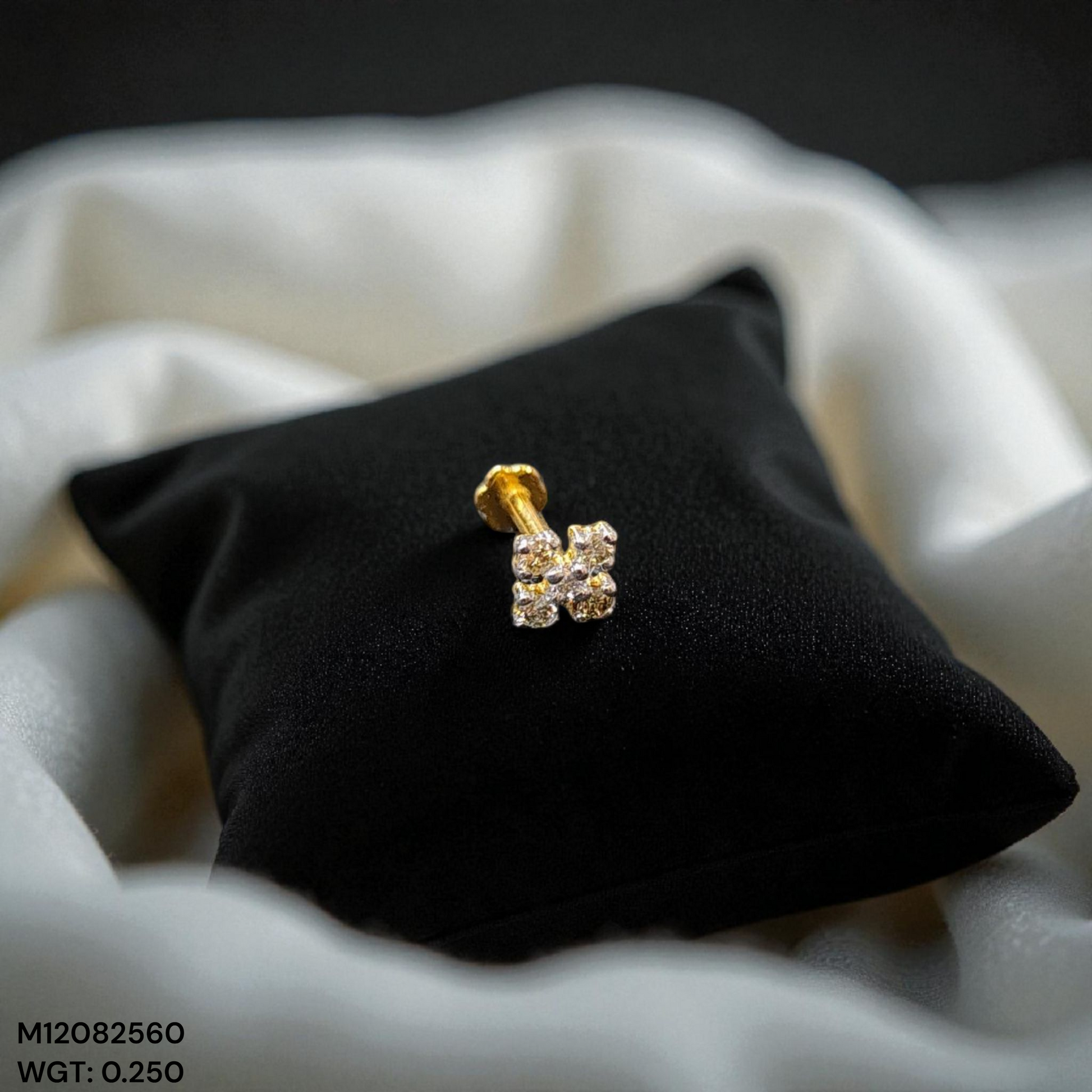 (GNP) RAJLAXMI DIAMOND JEWELLERY - WGT: 0.250 GM - NATURAL DIAMOND (0.08 CENT) HUID HALLMARK 18KT DIAMOND NOSEPIN FOR WOMEN WITH CERTIFICATE OF AUTHENTICITY BY IGJI (DESIGN NO: M12082560).