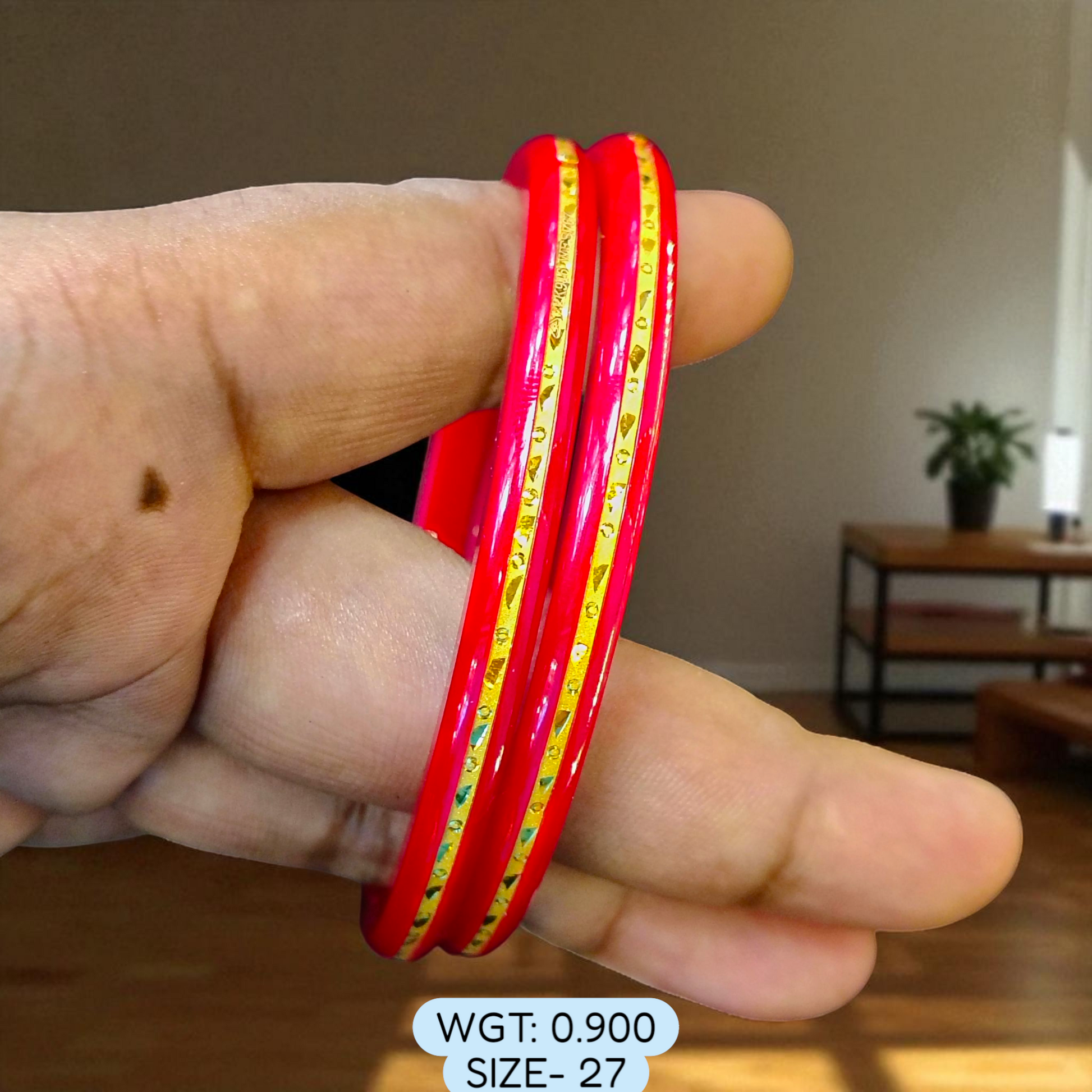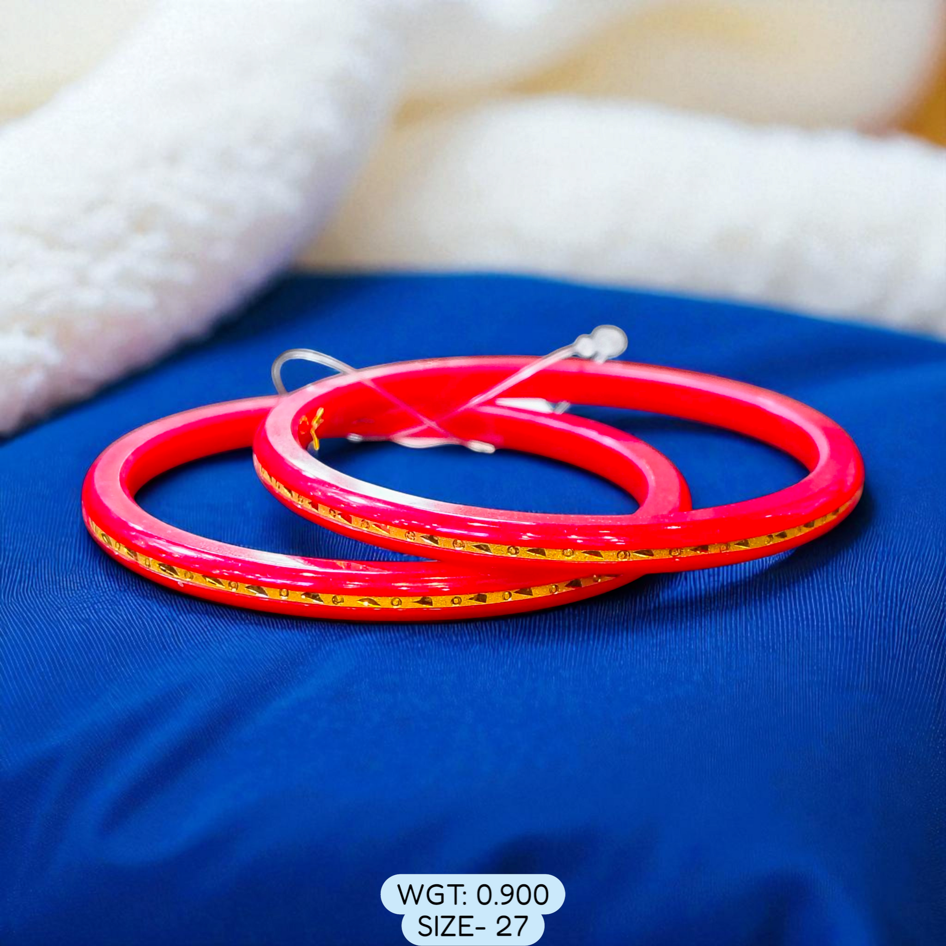 (GPB22) TRJ (SIZE: 27) WGT: 0.900 GM APPROX 22KT HUID HALLMARK GOLD POLA BADHANO BANGLES 1 PAIR DESIGN FOR REGULAR USE.