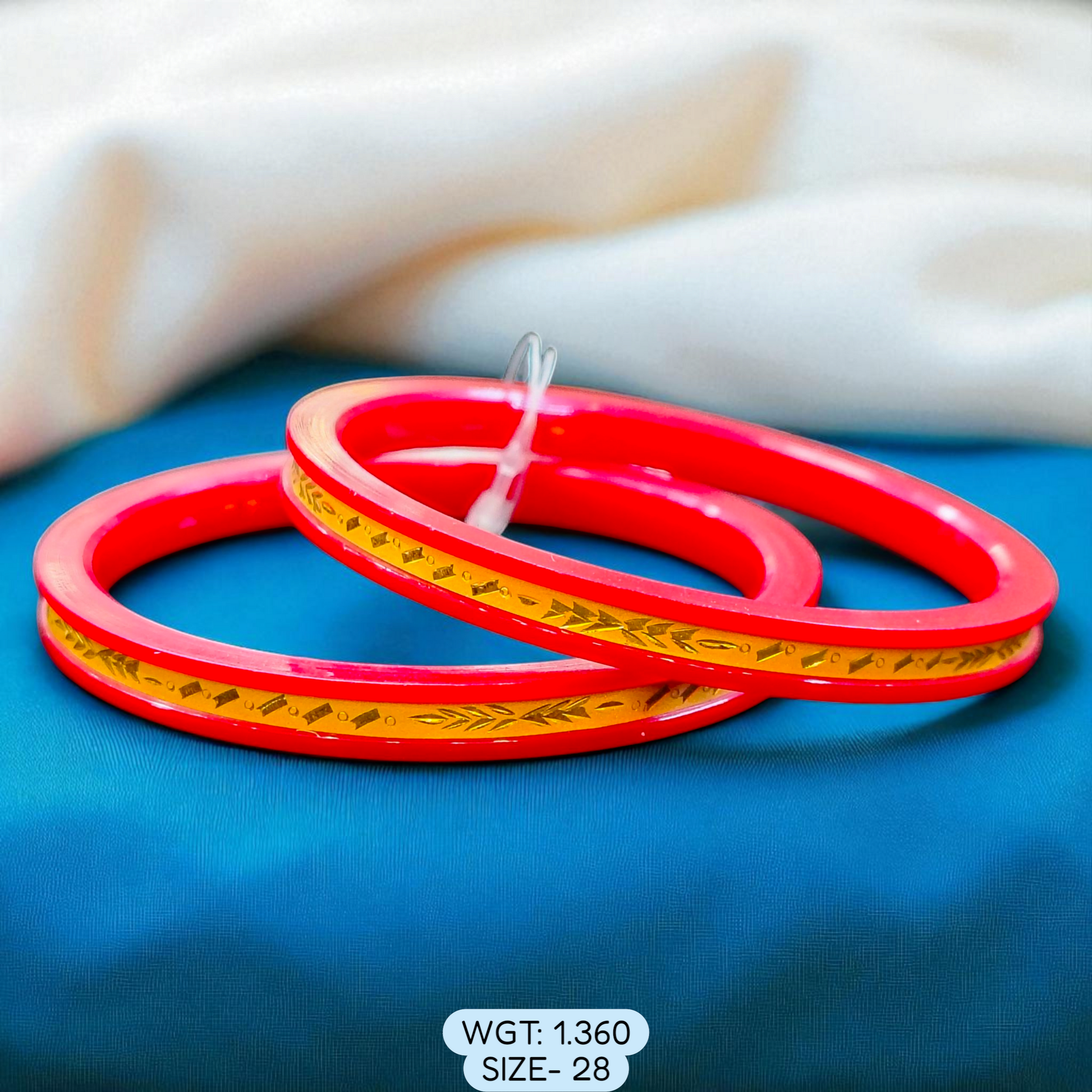 (GPB22) TRJ (SIZE: 28) WGT: 1.360 GM APPROX 22KT HUID HALLMARK GOLD POLA BADHANO BANGLES 1 PAIR DESIGN FOR REGULAR USE.