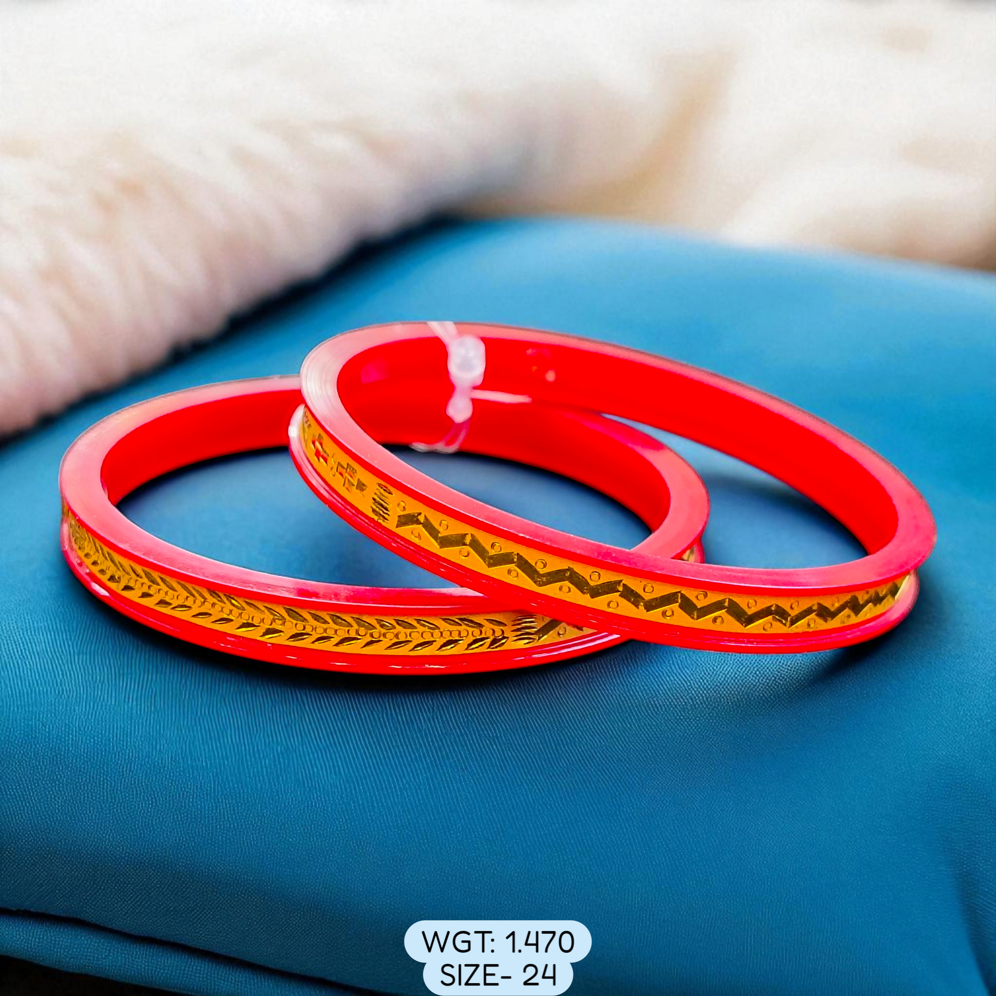 (GPB22) TRJ (SIZE: 24) WGT: 1.470 GM APPROX 22KT HUID HALLMARK GOLD POLA BADHANO BANGLES 1 PAIR DESIGN FOR REGULAR USE.