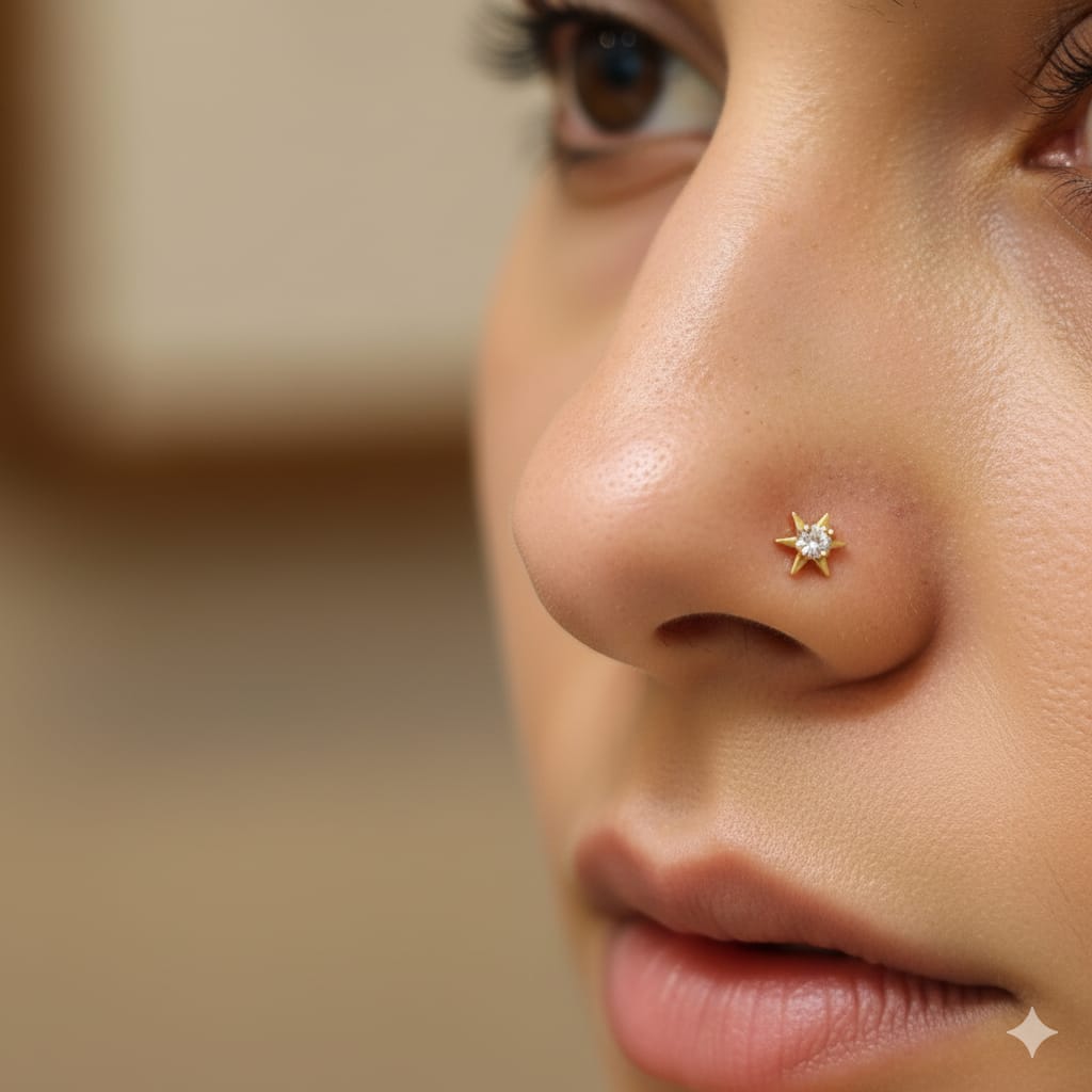(GNP) RAJLAXMI DIAMOND JEWELLERY - WGT: 0.260 GM - NATURAL DIAMOND (0.05 CENT) HUID HALLMARK 18KT DIAMOND NOSEPIN FOR WOMEN WITH CERTIFICATE OF AUTHENTICITY BY IGJI (DESIGN NO: M12082565).
