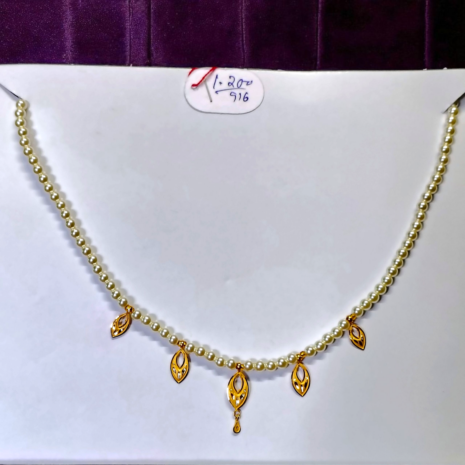 (GSH) RAJLAXMI WGT: 1.200 GM APPROX HUID HALLMARK 22KT GOLD MOTI SELIHAR 1 PIECE WITH ADJUSTABLE TASSEL.