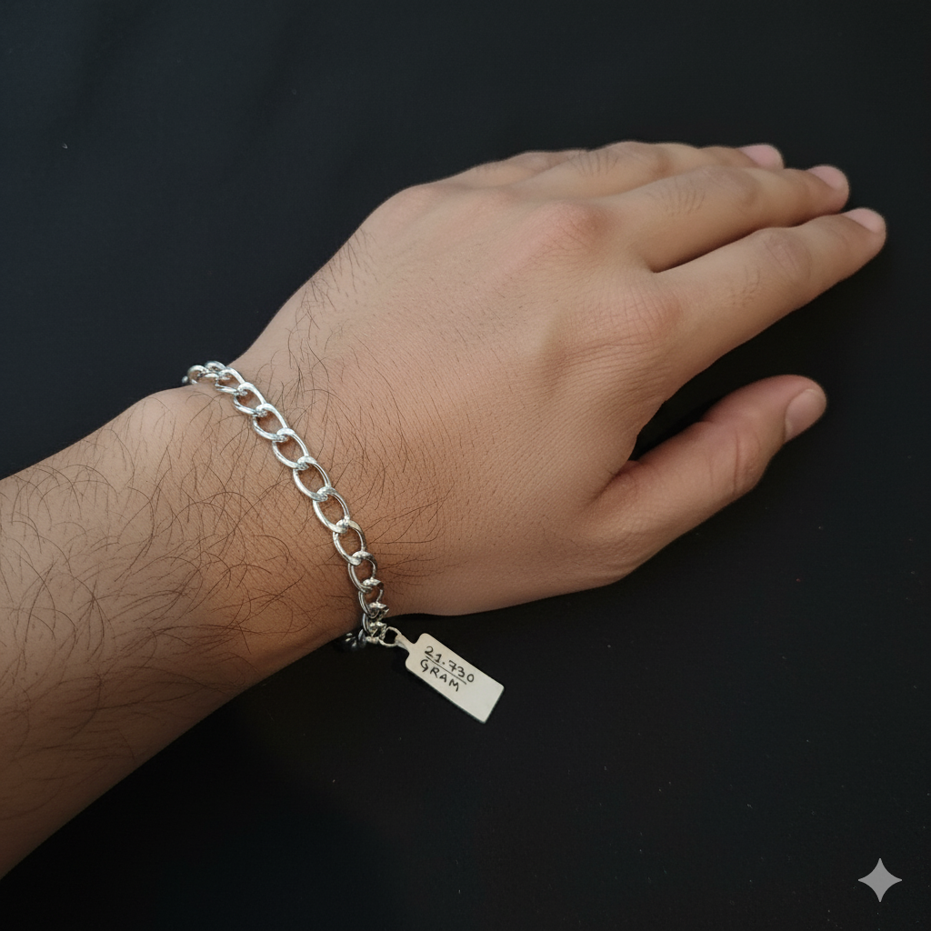 (SWL) RAJLAXMI 625 SILVER WRISTLET WGT: 21.730 GRAM 8.5" INCH FOR UNISEX 1 PIECE (REGULAR USE)