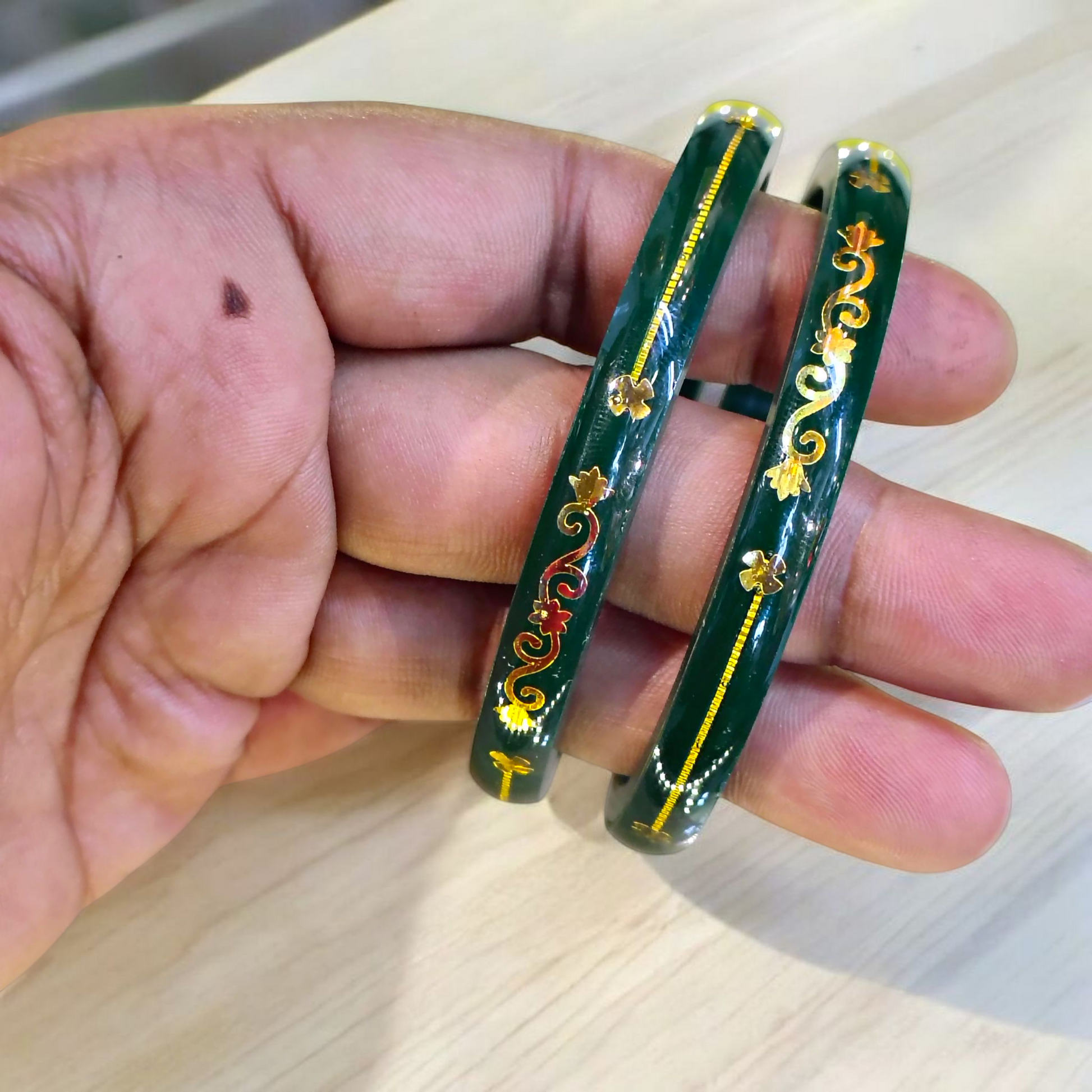 Enhance your wardrobe with our GREEN (FACEBOOK VIRAL POLA) GOLDEN DETAILING GLASS LAMINATION POLA PATTERN DESIGN 1 PAIR FOR WOMEN. Perfect for any occasion, this non-exchangeable item adds elegance and style to any outfit. Get any design as per availability for a unique and personalized touch.