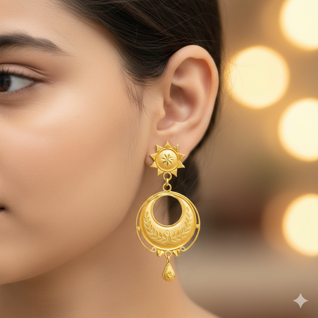 (GER22) BIS CERTIFIED WGT: 1.800 GM APPROX HUID HALLMARK 916 22KT GOLD EARRINGS KANBALA 1 PAIR FOR WOMEN.