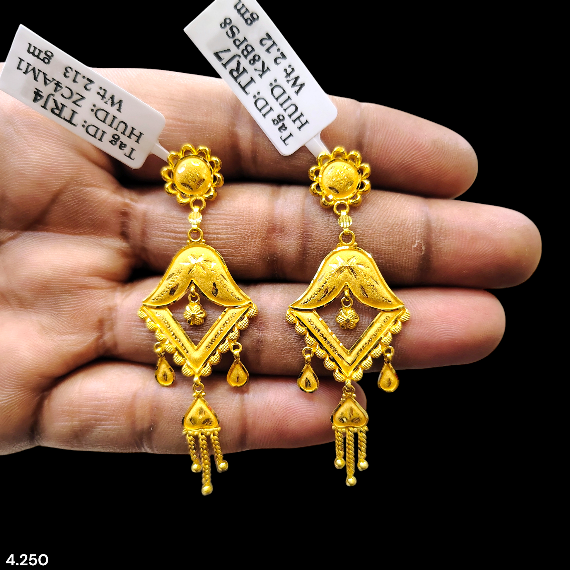 (GER22) BIS CERTIFIED WGT: 4.250 GM APPROX HUID HALLMARK 916 22KT GOLD EARRINGS KANBALA 1 PAIR FOR WOMEN.