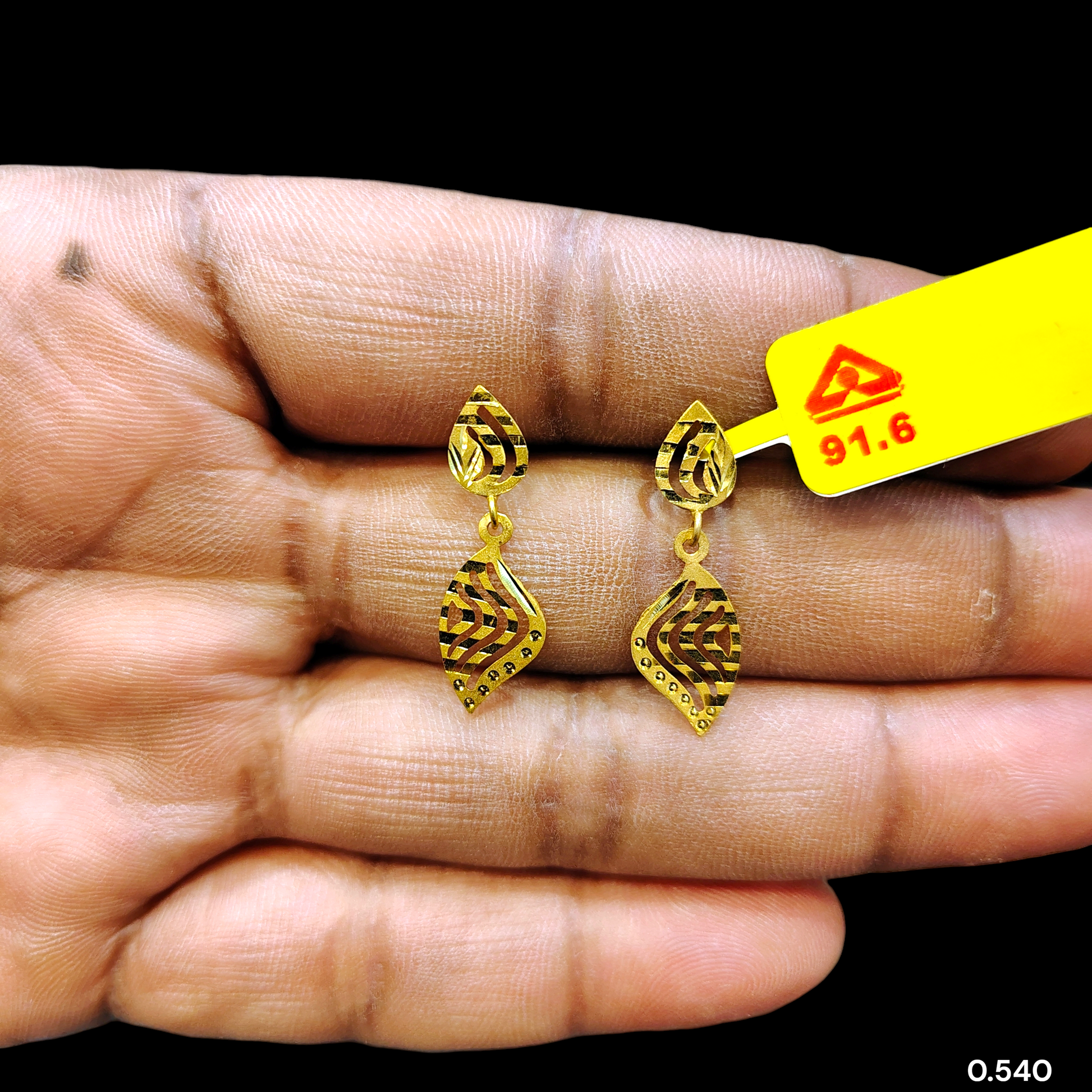 GOLD EARRINGS- WGT: 0.540 GM APPROX BIS CERTIFIED HUID HALLMARK 9KT GOLD EARRINGS 1 PAIR FOR WOMEN.