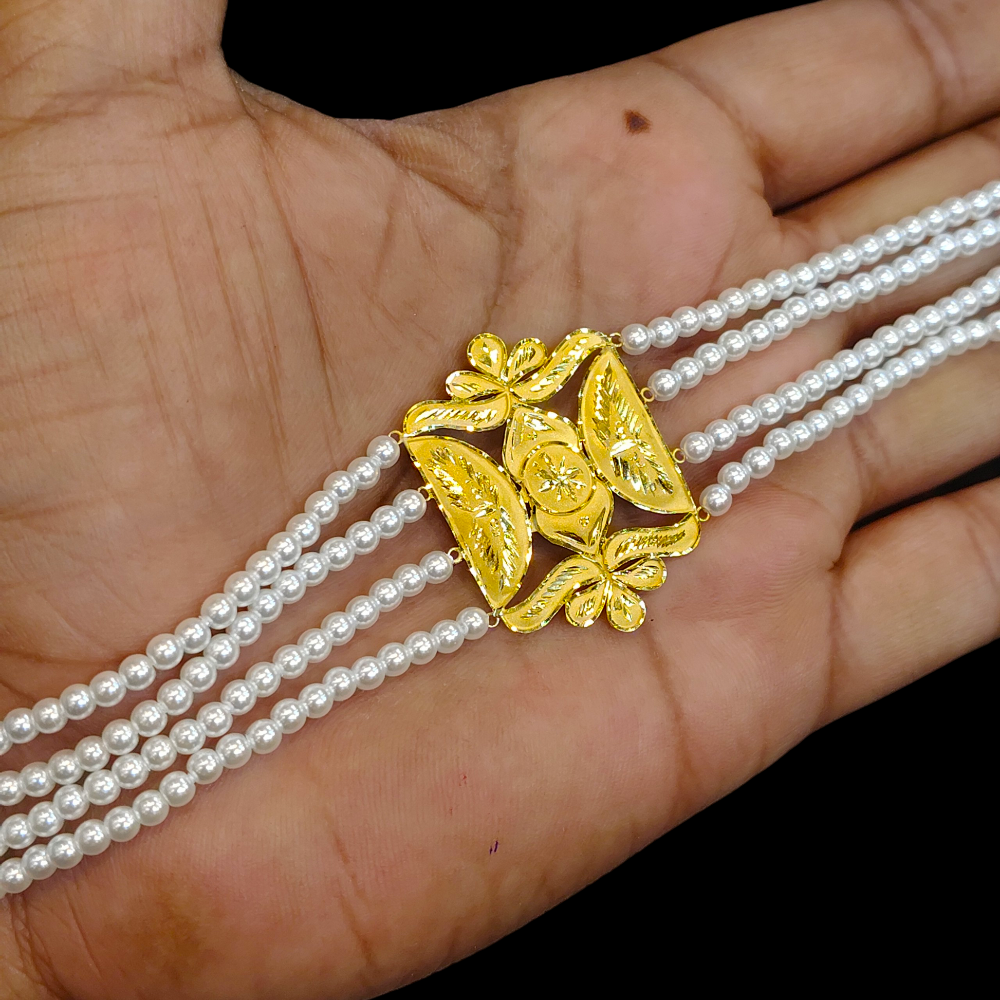 GOLD MANTASHA- RAJLAXMI WGT: 1.430 GM APPROX HUID HALLMARK 916 22KT GOLD MOTI MANTASHA WITH PEARL CHAIN FOR WOMEN.