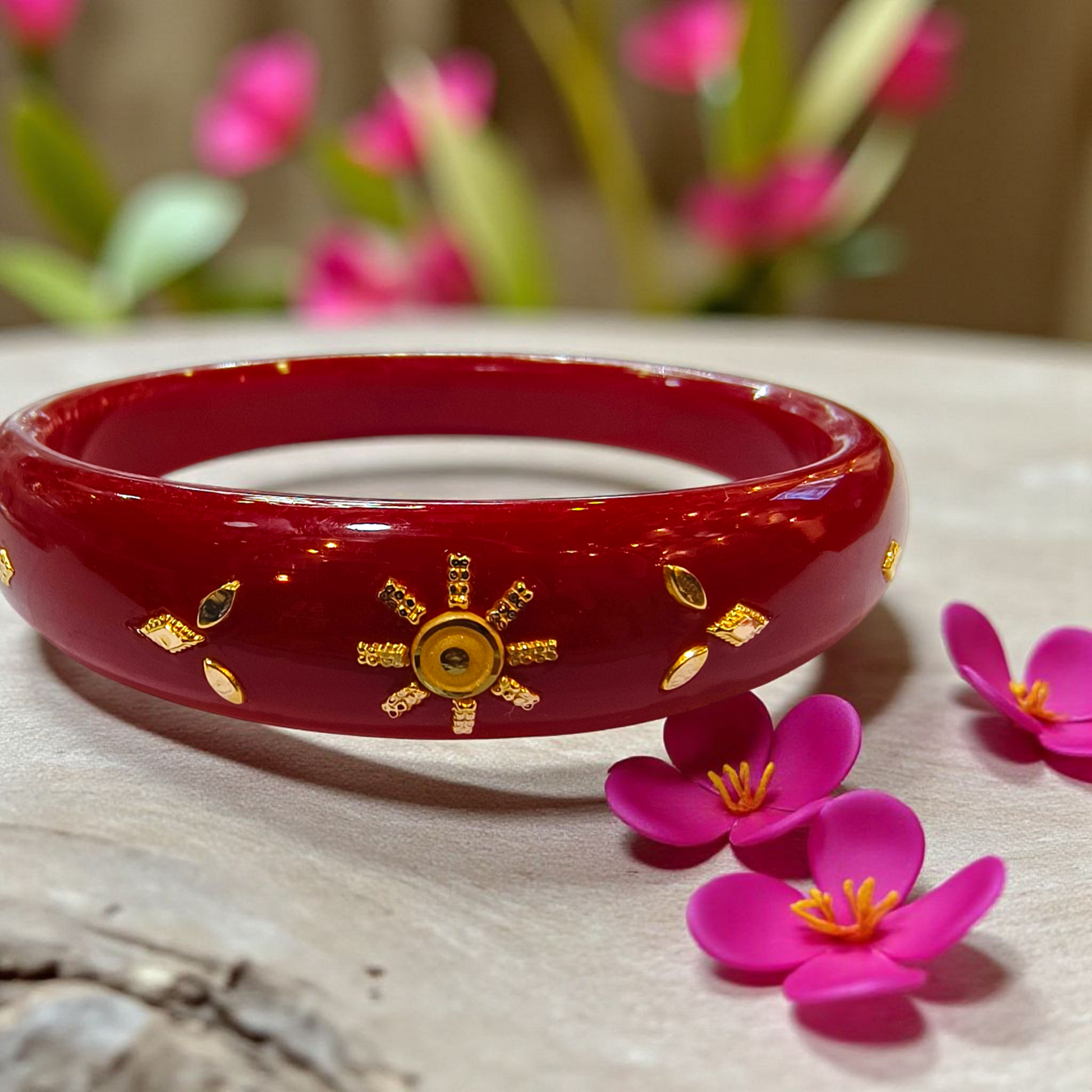 (GBP18) RED COLOUR HUID HALLMARK 18KT GOLD BRACELET POLA 1 PIECE FOR MARRIED WOMEN (REGULAR USE) APPROX WGT: 0.250 GM