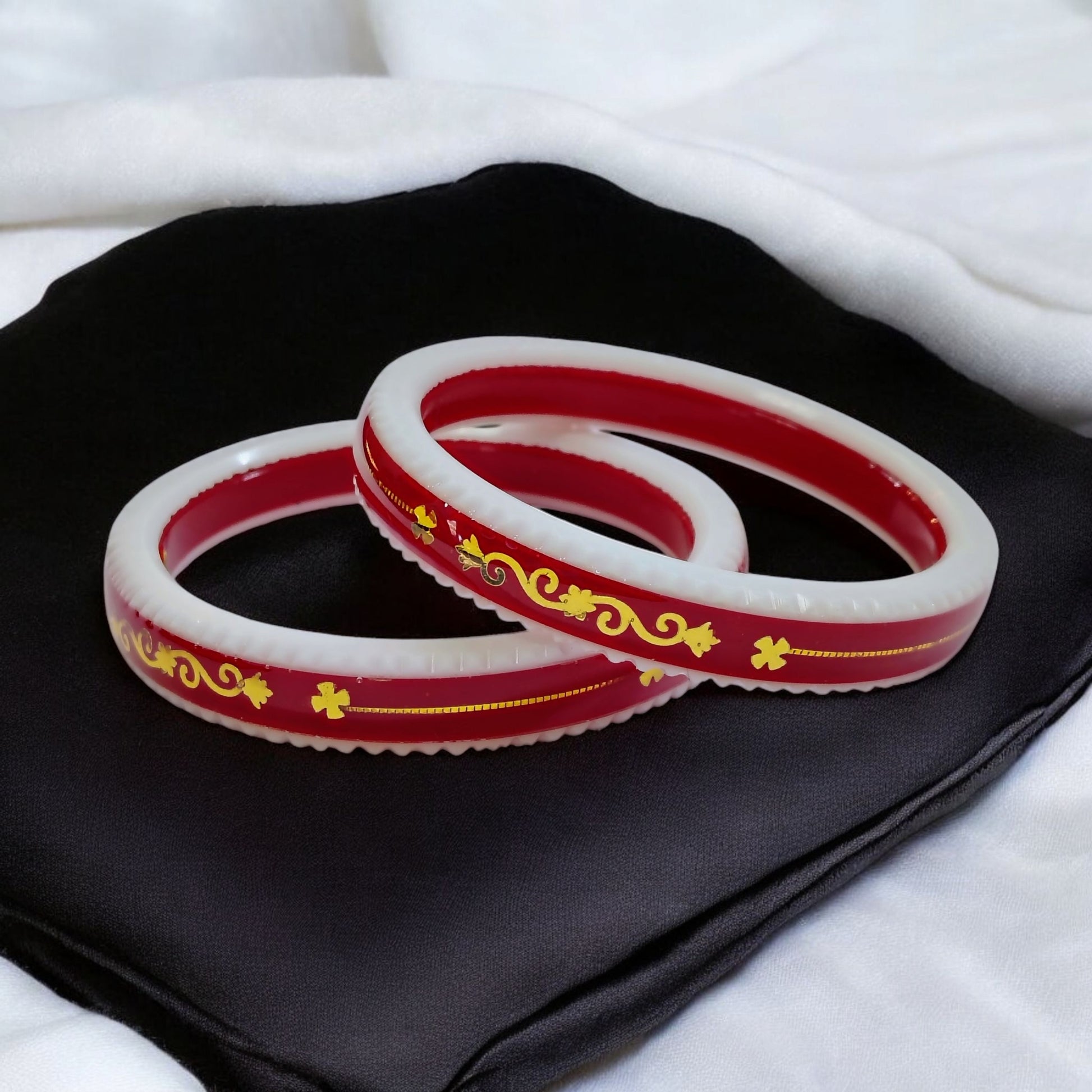 RED/WHITE MIXED (FACEBOOK VIRAL POLA) GOLDEN DETAILING LAMINATION POLA PATTERN DESIGN 1 PAIR FOR WOMEN - NON EXCHANGEABLE ITEM (GET ANY DESIGN AS PER AVAILABILITY)