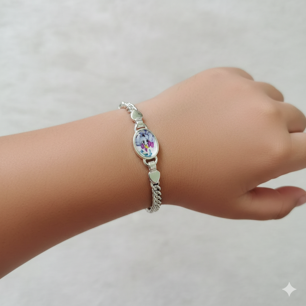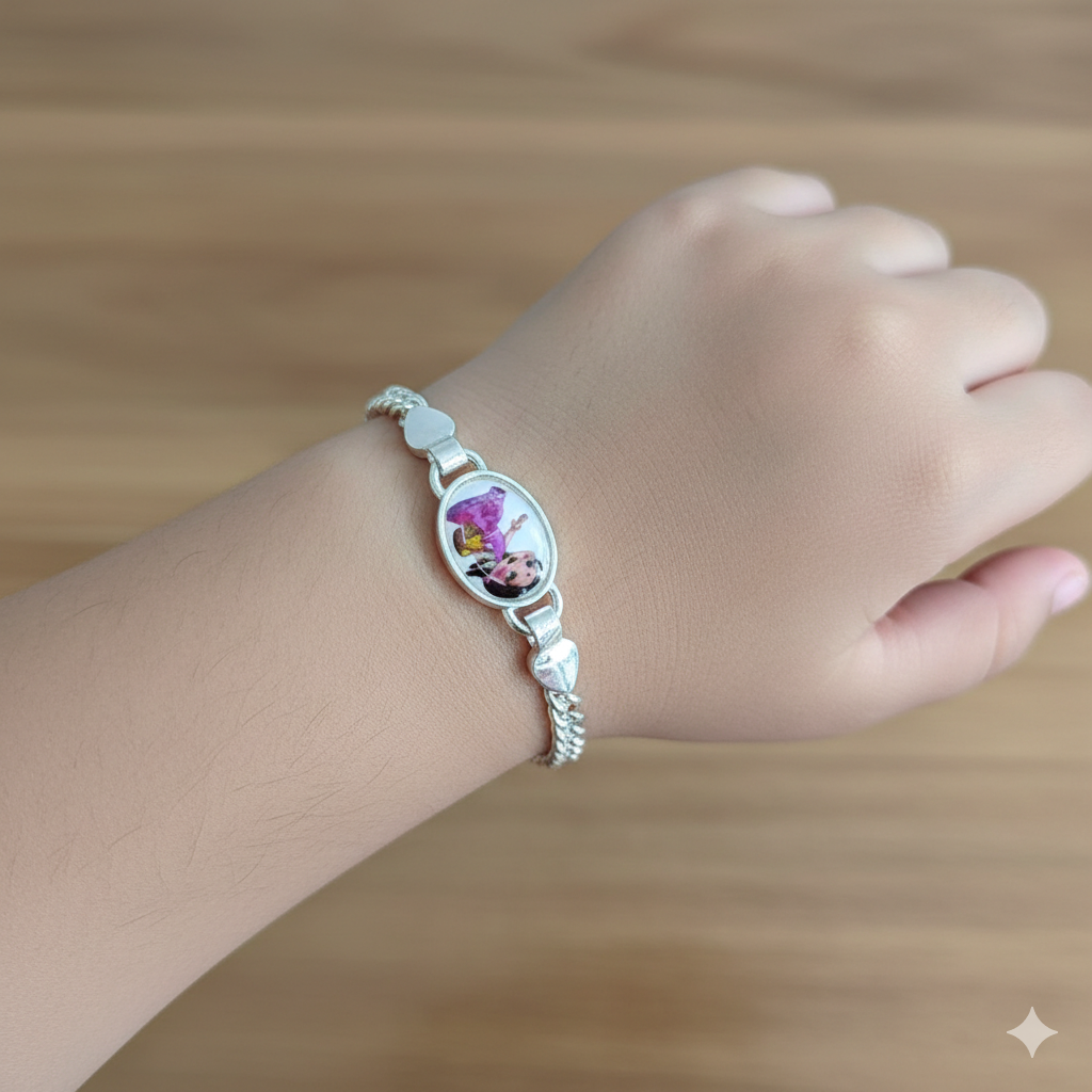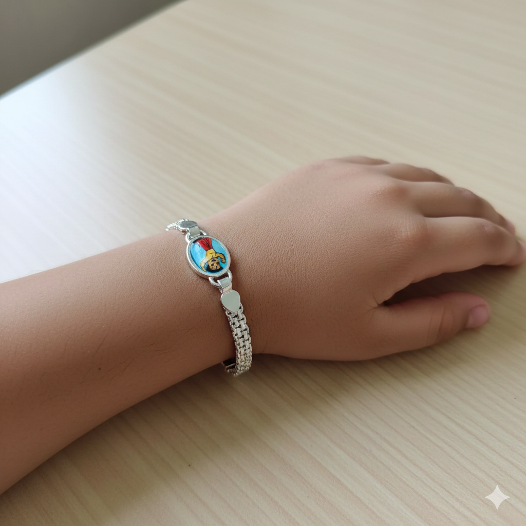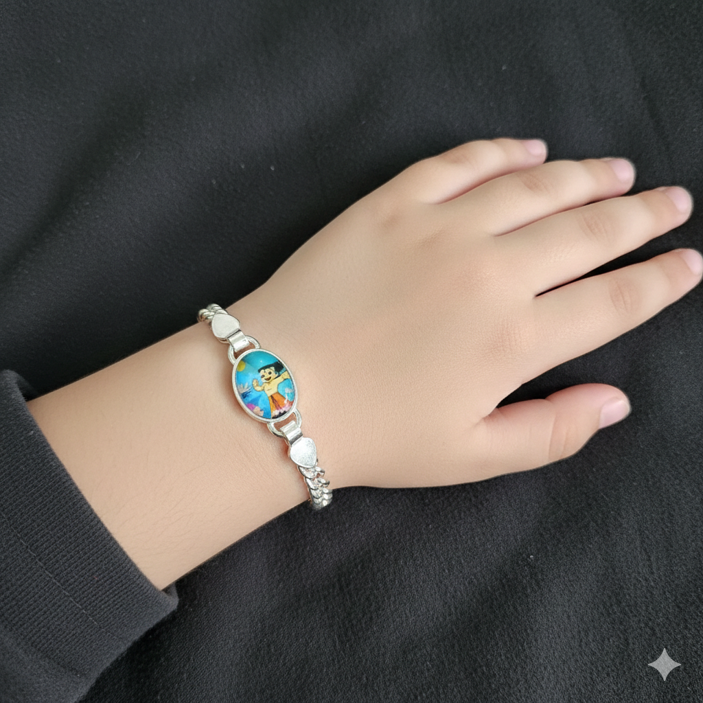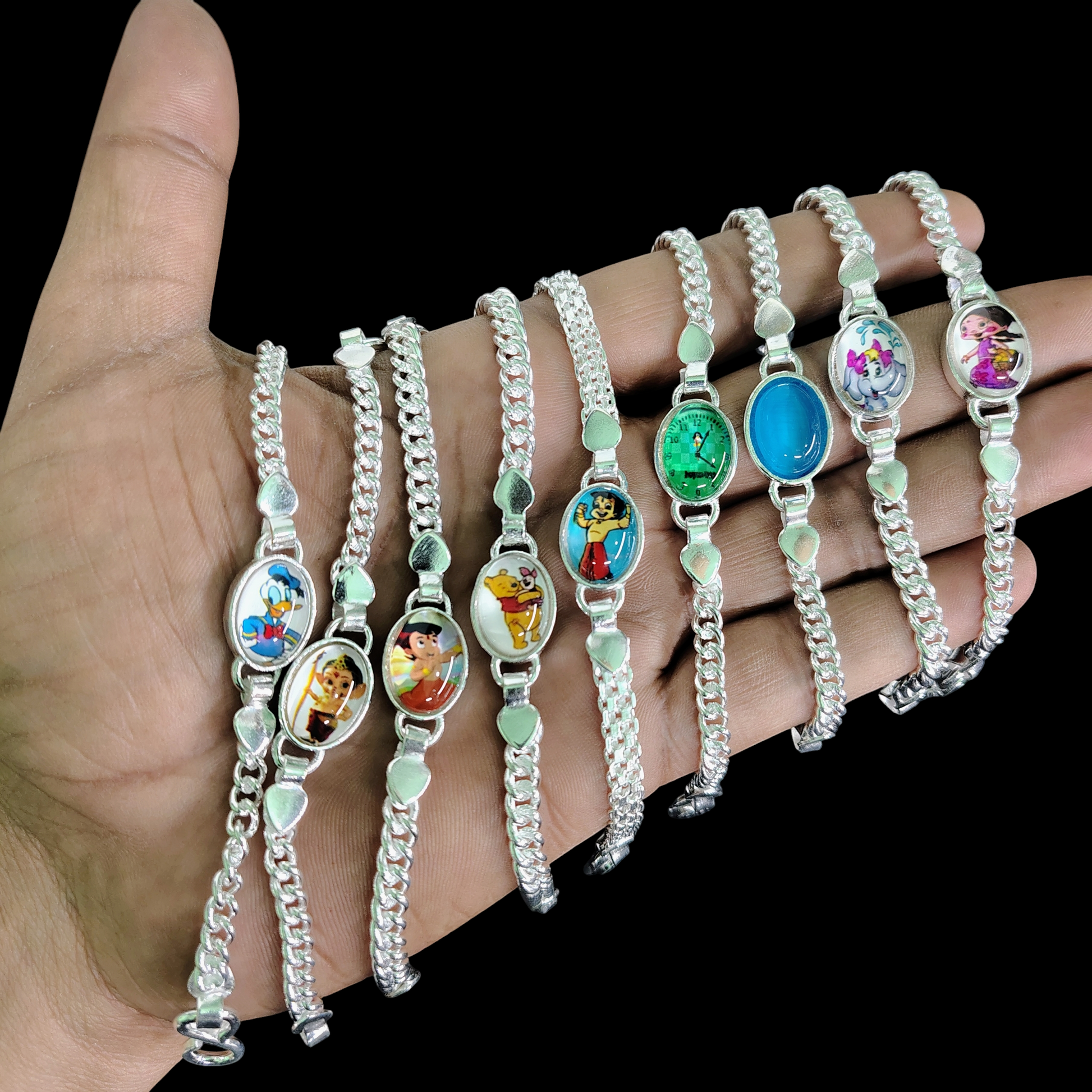 BABY JEWELLERY - 625 SILVER WRISTLET 5 INCH FOR BABY FOR REGULAR USE APPROX WGT: 10.00 GM- BEST OF RICE CEREMONY AND BIRTHDAY GET ANY DESIGN AS PER AVAILABILITY (SOLD ON MRP).